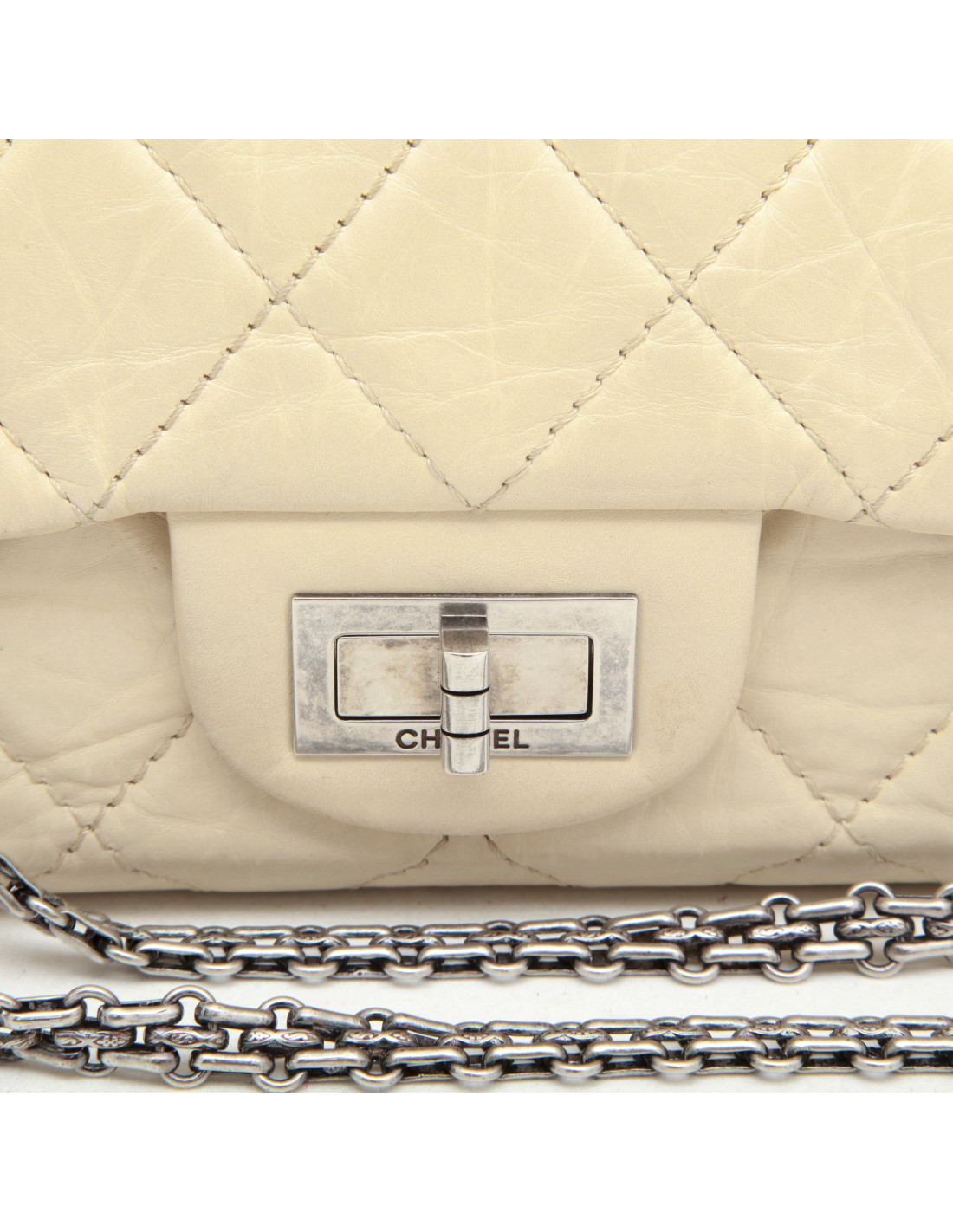 Antique silver metal hardware. Clasp 2.55. The interior is lined with ivory leather.