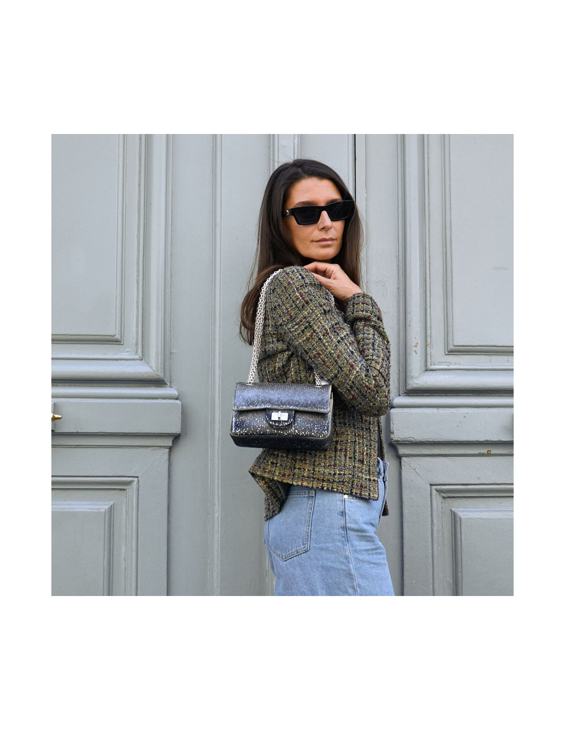 Last items in stock 255 CHANEL CHANEL 255 Flap Bag in Green Tweed CHANEL 31344 3,850.00 € CHANEL 255 Flap Bag in Green Tweed Condition: very good conditionColor: green, old silverMaterial: tweed, leatherDimensions: 33x21x8cmShoulder strap dimension: at the shortest 107 cm, several additional holes to make it longer, otherwise it is possible to make other holes to make it shorter.Hologram: yes (13...)Map: NoMention: CHANEL Made in France The +... Add to cart