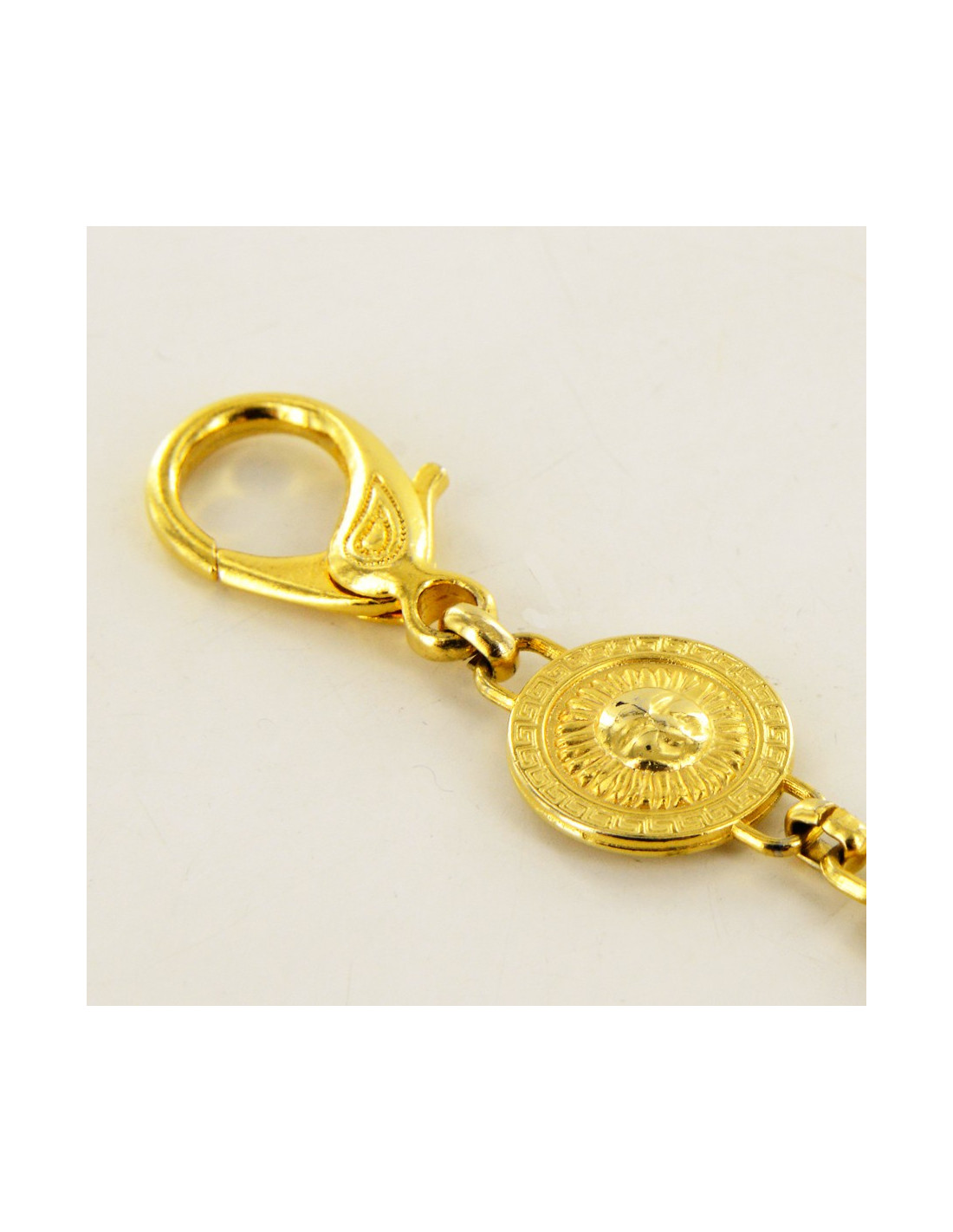 Jewel bag Versace, chain which includes 19 links metal gold, thanks to its two clasps carabiner, you'll be able to hang the jewel wherever you like, bags, belts and necklaces. Delivered in a small black box.