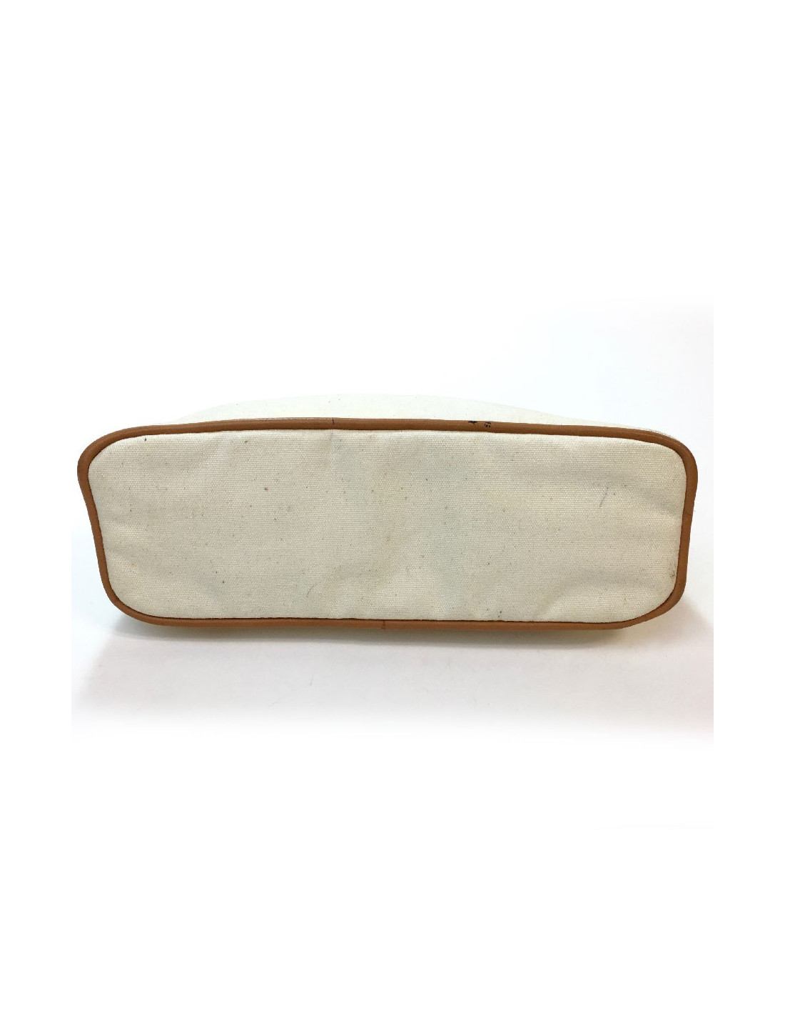 Hermes toiletry bag in beige canvas with natural leather trim. Slight traces of ink on the leather (see photo), a small stain on the back (bottom right).