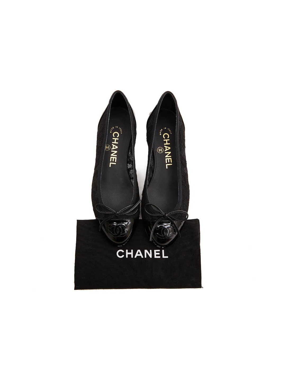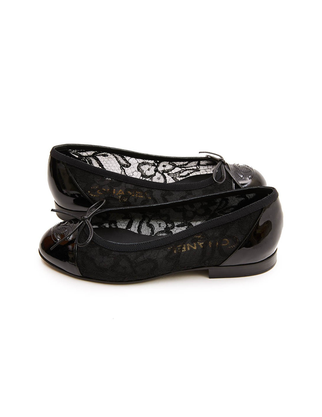 CHANEL ballerians size 34FR in lace and black patent leather