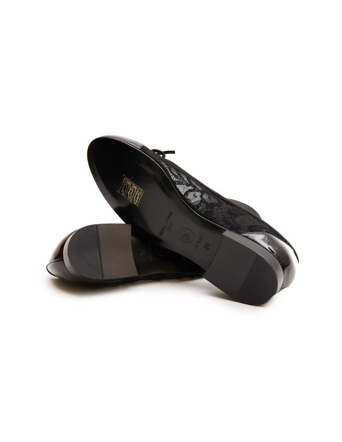Chanel ballerinas in lace and black patent leather. Size 34. Made in Italy. They come from private Sales 2017.