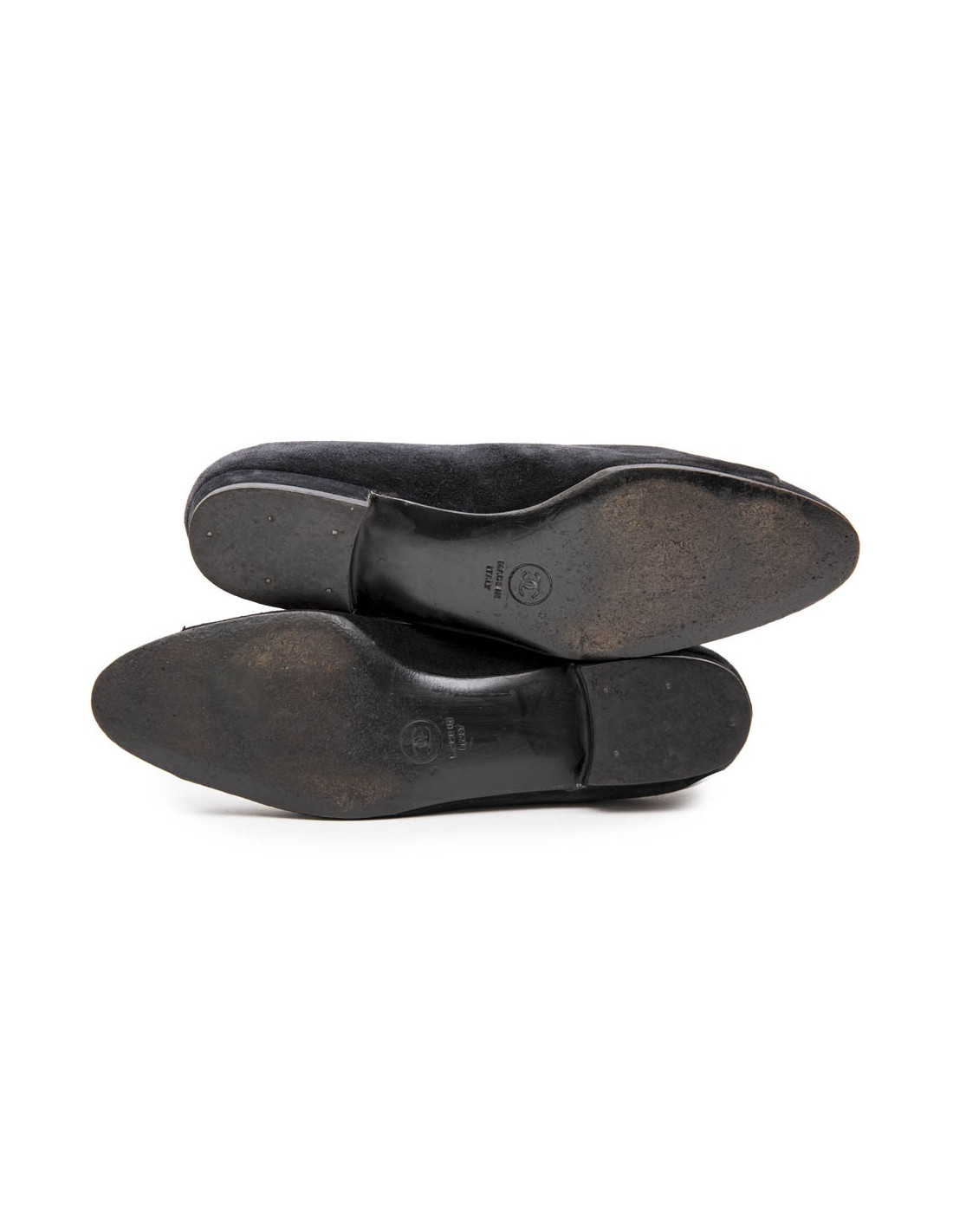 Couture Chanel ballerina shoes in navy blue velvet suede and satin. Size 39.