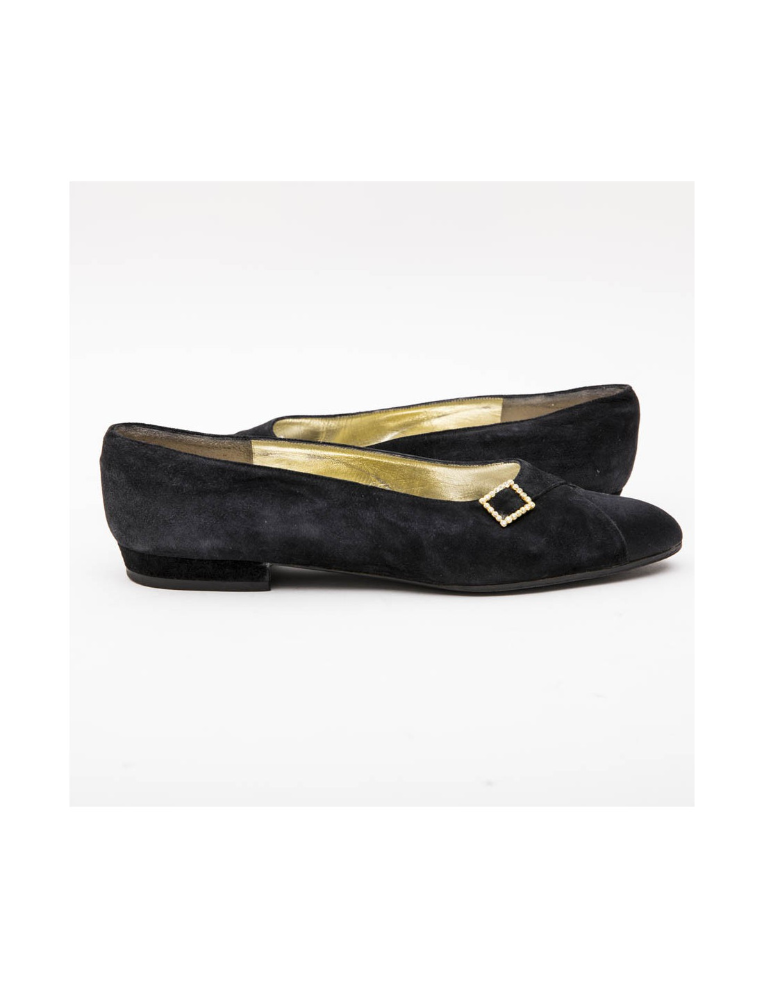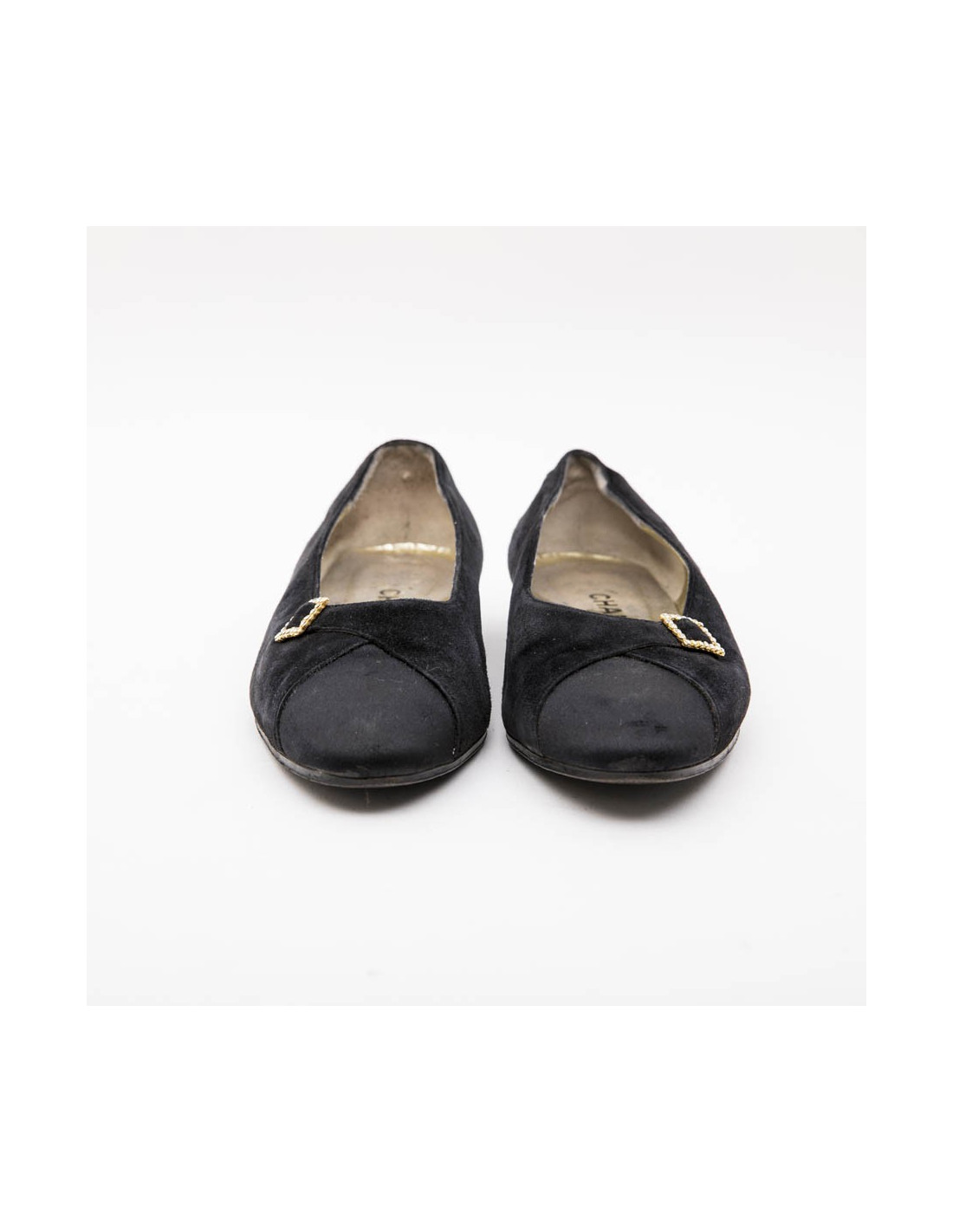 CHANEL ballerina shoes in navy blue velvet and satin size 39