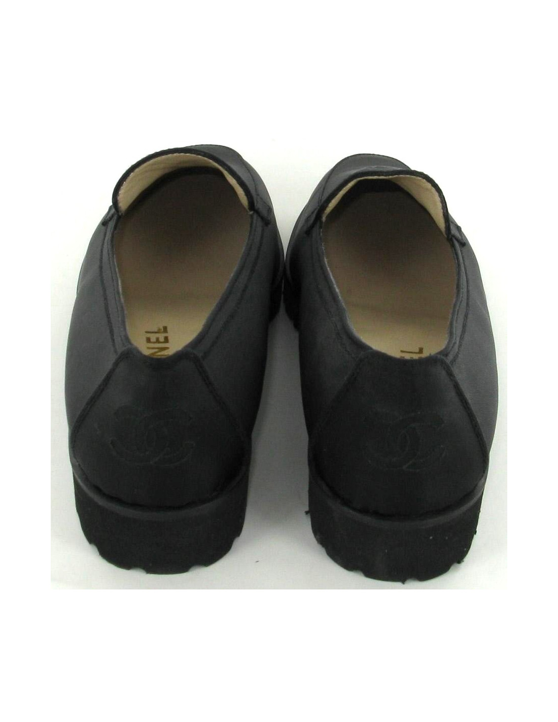 Moccasins CHANEL T 39.5 in black satin canvas.