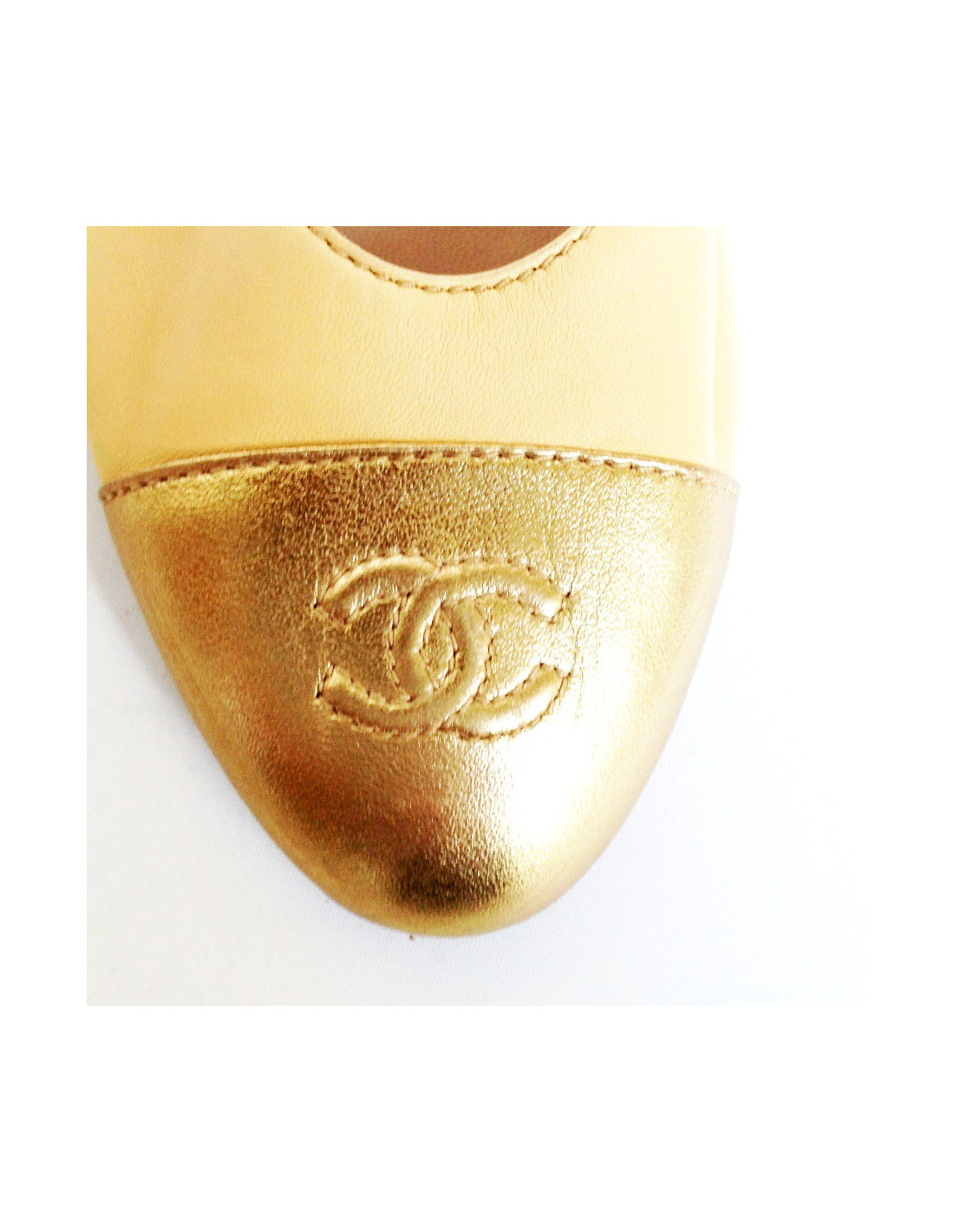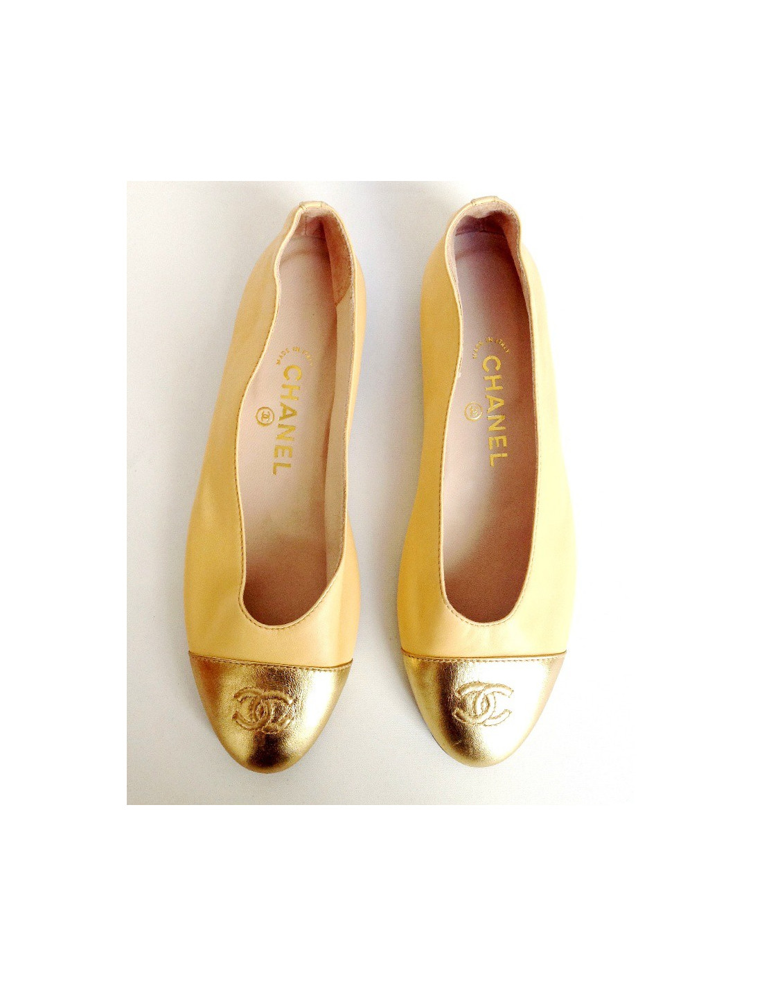 Ballerinas CHANEL T40 two-tone gold and beige