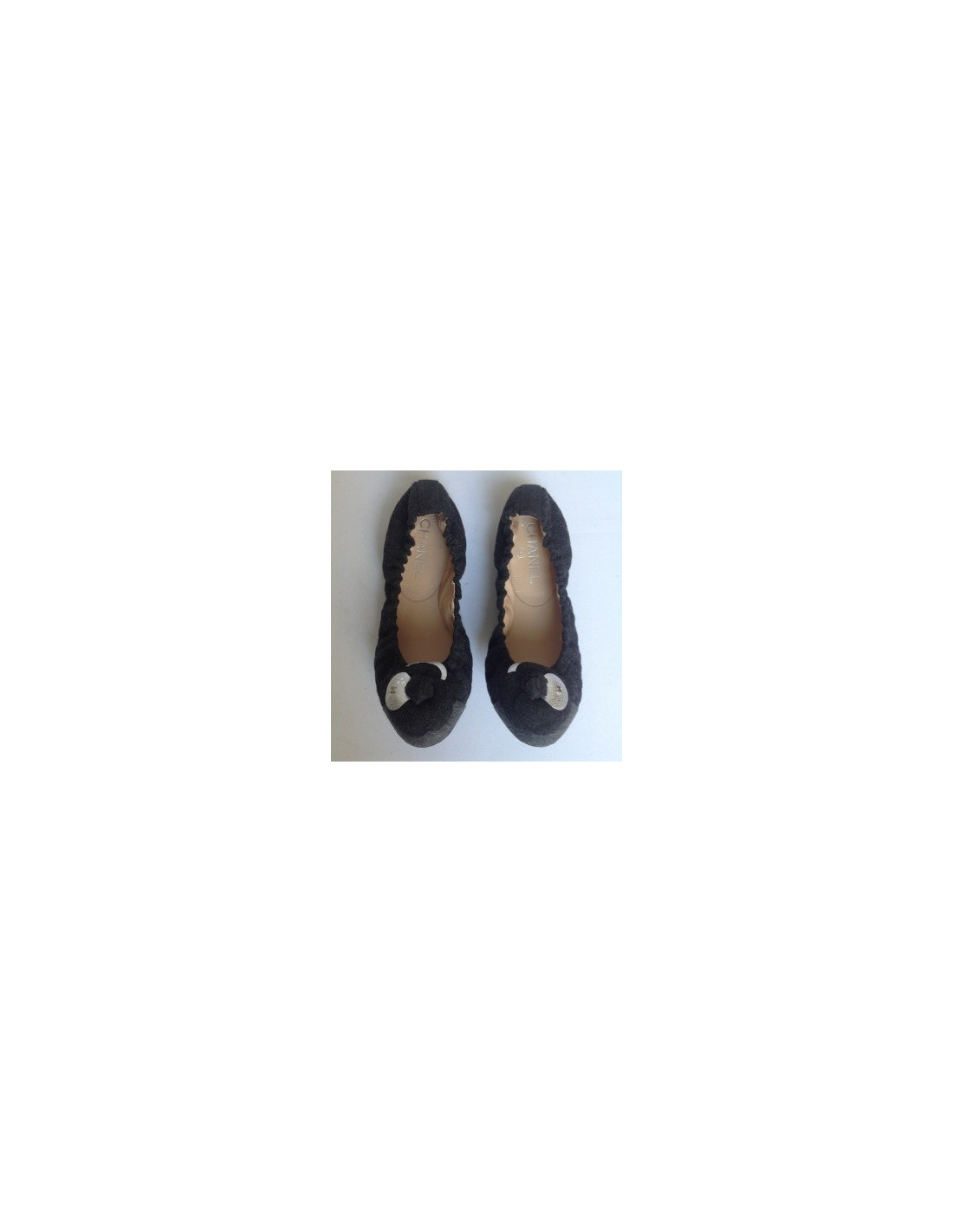Ballerinas two-tone Chanel grey T37.5 -. At the front a Camellia in felt grey and silver with a CC metal silver -. The Interior is beige leather- In very good condition.