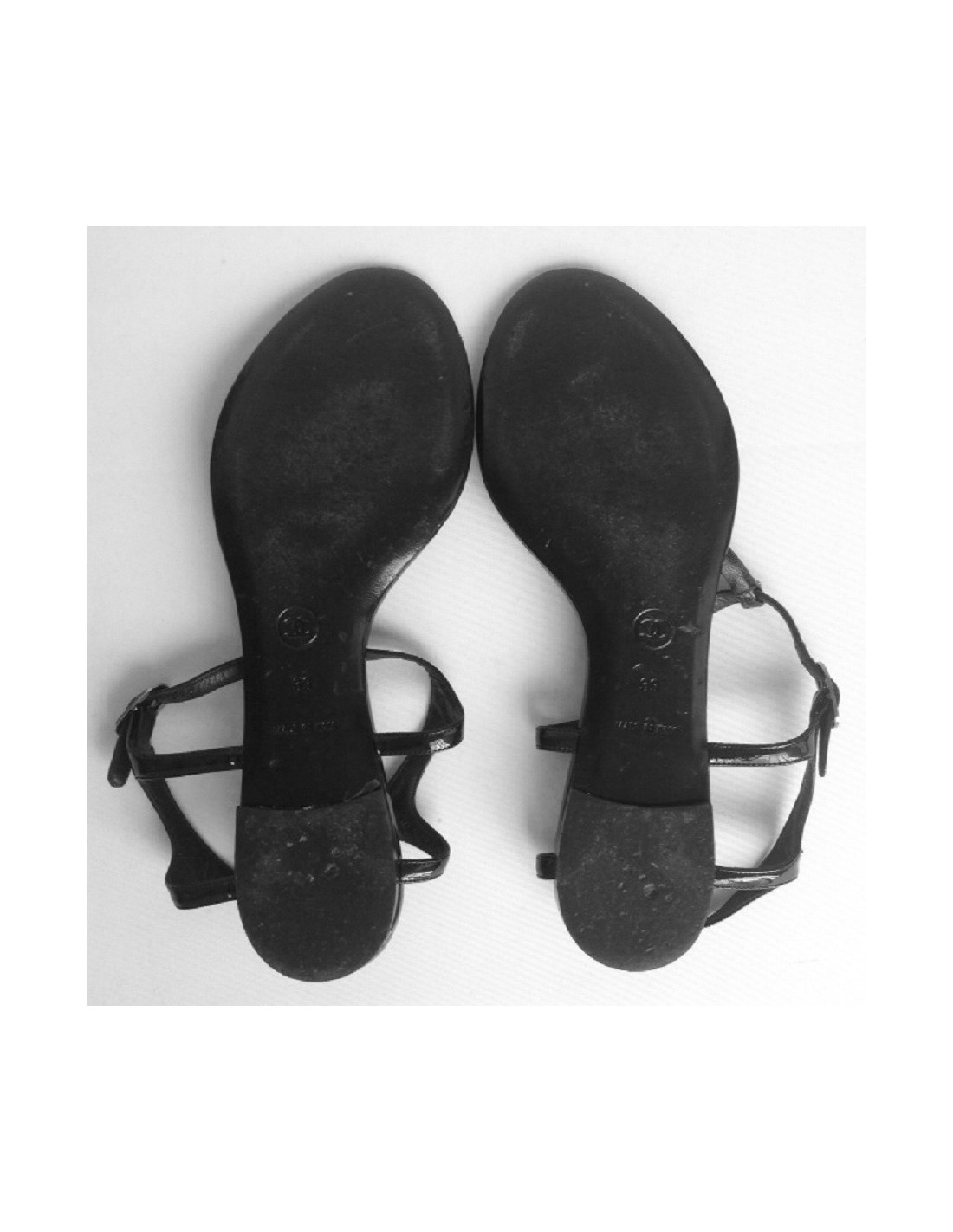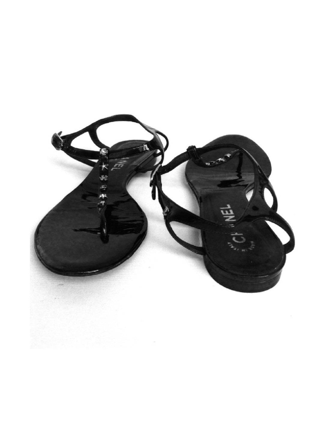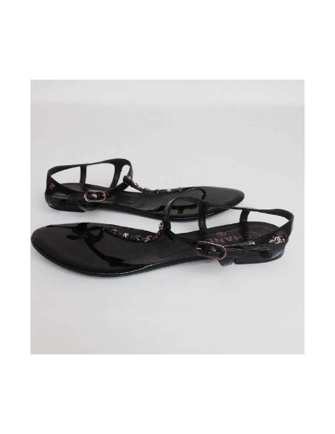 Flat Sandals Black patent leather CHANEL T39