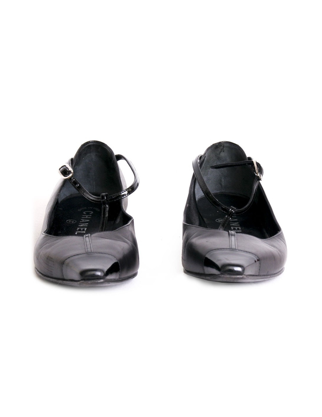 Chanel T37 ballerinas in lambskin and black patent leather