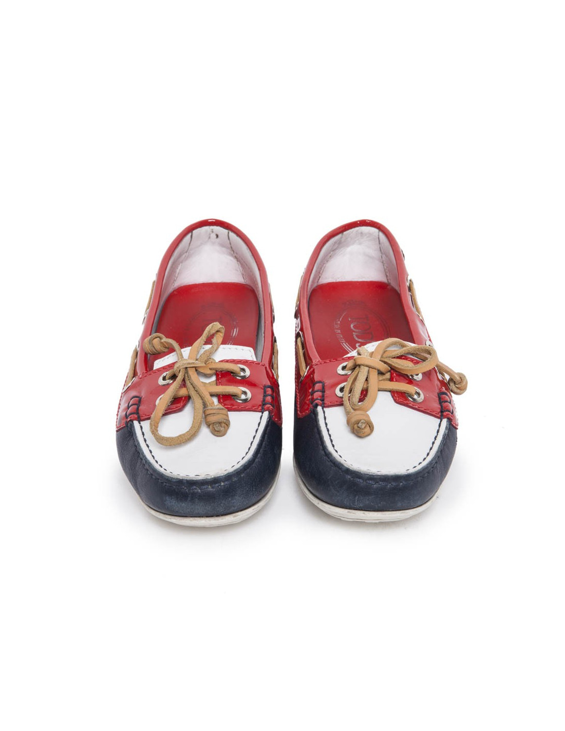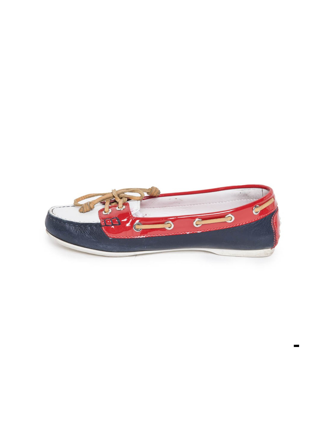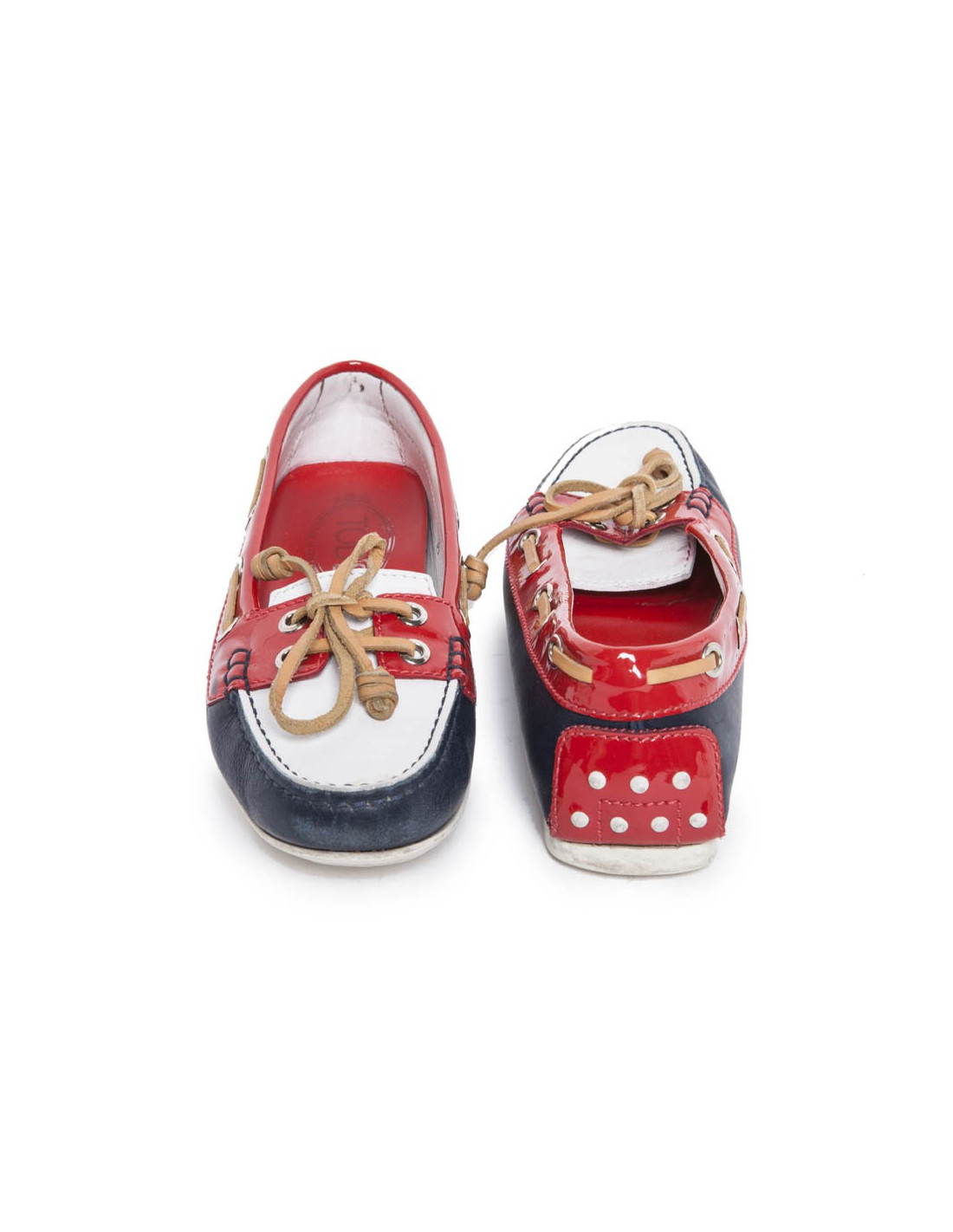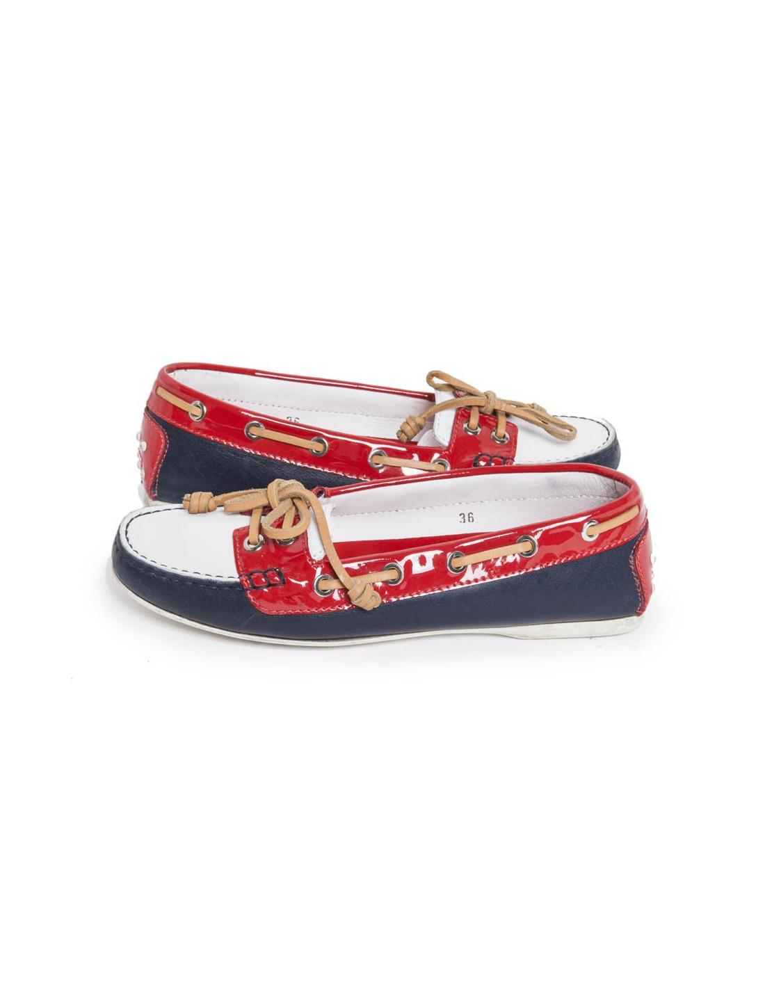 Tod's moccasins HABs leather, Navy Blue, white and red patent leather. The laces are brown leather. Size 36. White rubber sole. In very good condition. Slight wear to the front of the shoes due to the rubbing.