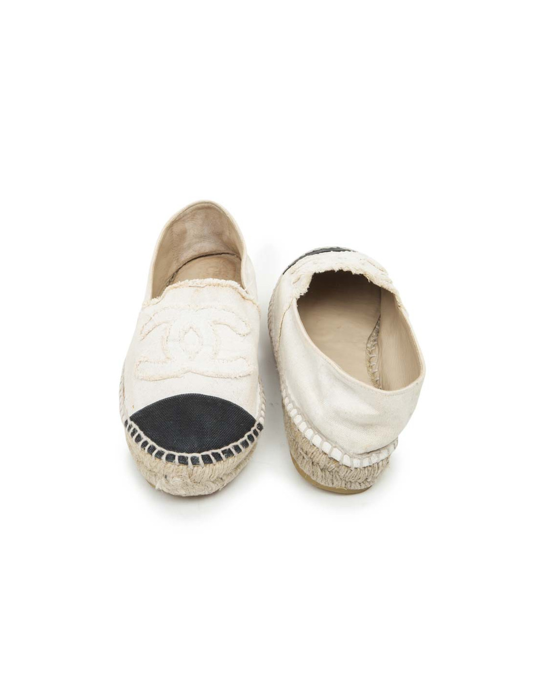 The House of Chanel in canvas ecrue and blue sneakers Navy. Size 40. The Interior is beige lambskin. In good condition. A few spots of wear and tear of use.