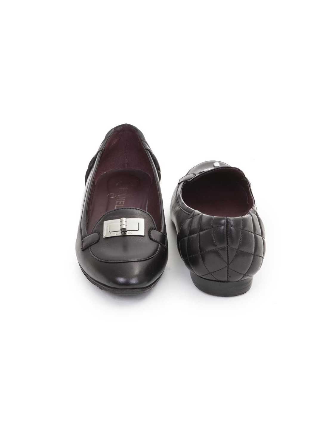 Chanel ballerinas in black smooth lamb leather. 2.55 Buckle clasp in ruthenium metal.