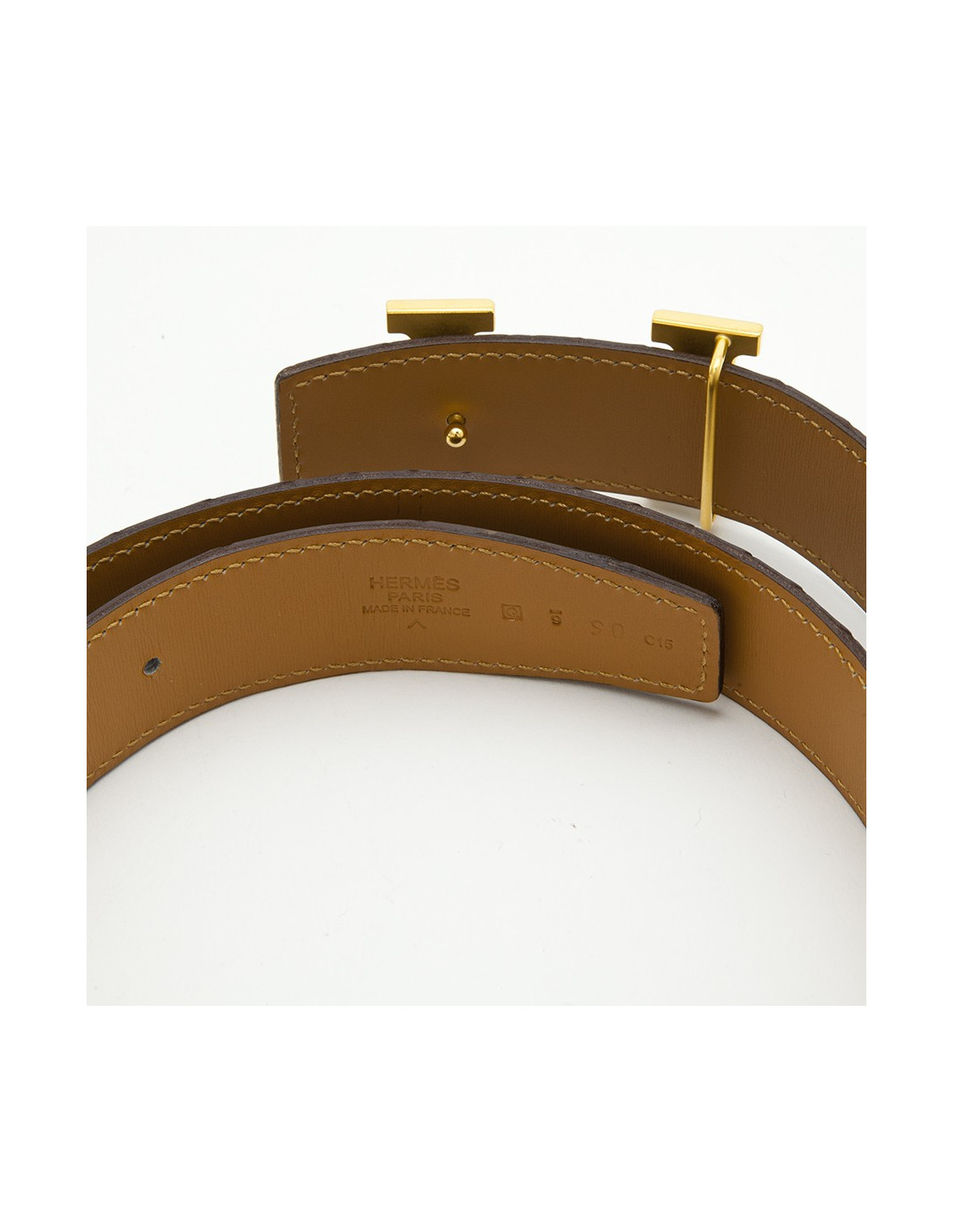 New Last items in stock BELTS Belt H vintage Hermès golden HERMES 40009 490.00 € Hermès reversible H belt from 2011, combining timeless style with everyday versatility. Crafted from quality leather, it offers two distinct looks: a clean white side for a classic feel, and a vibrant blue side for a bolder touch.The iconic gold-tone "H" buckle instantly defines the piece. Simple yet unmistakable, it reflects the craftsmanship and strong... Add to cart