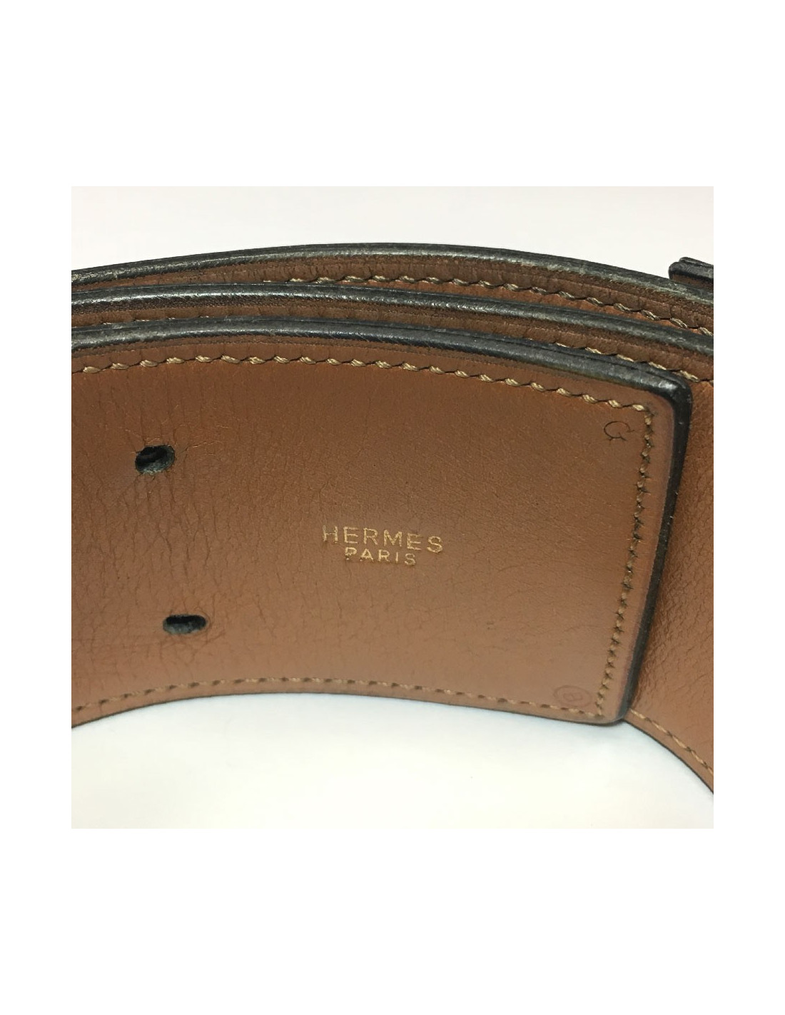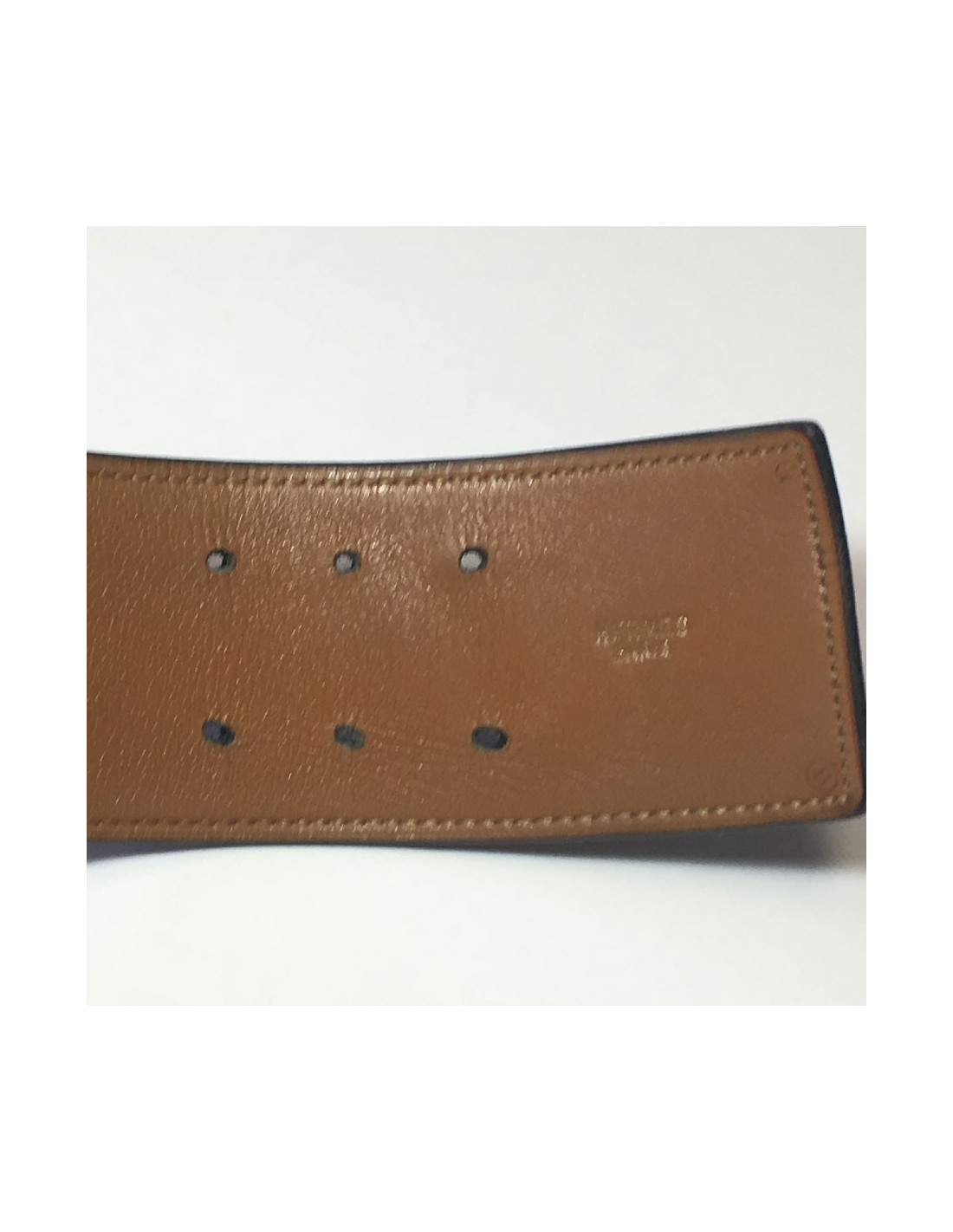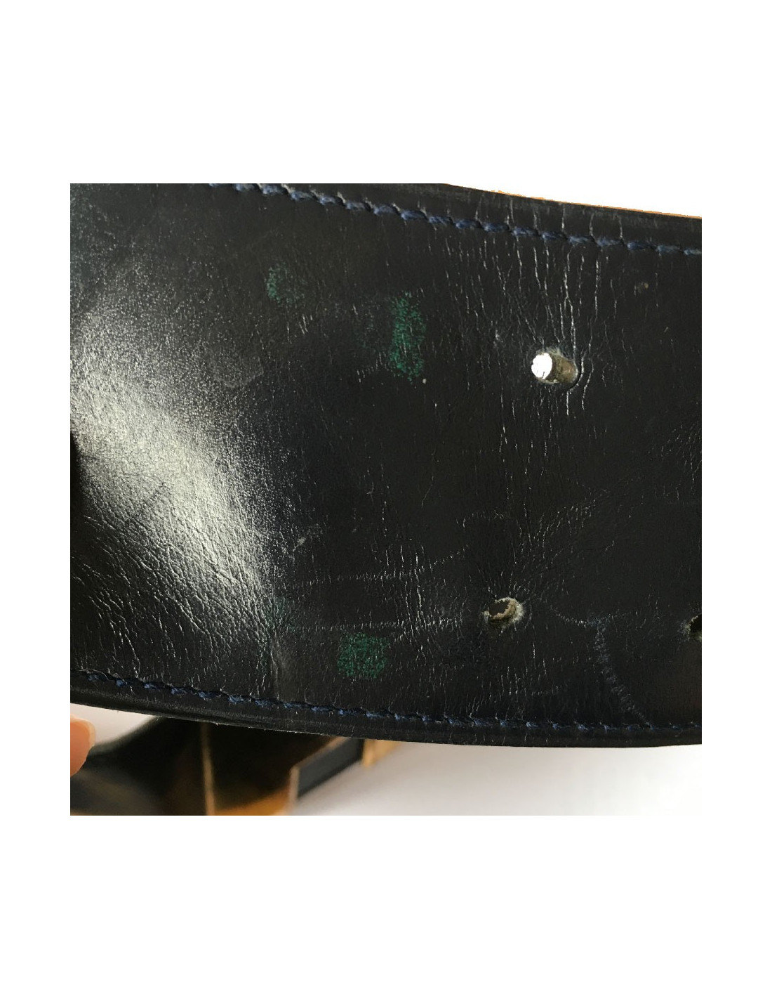 Hermès vintage belt in navy leather, gold leather interior. Hardware H in gilded metal. Hook clasp.