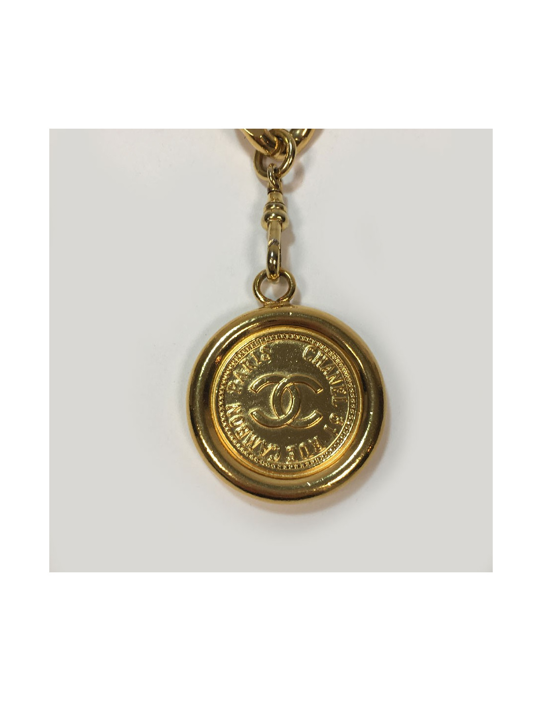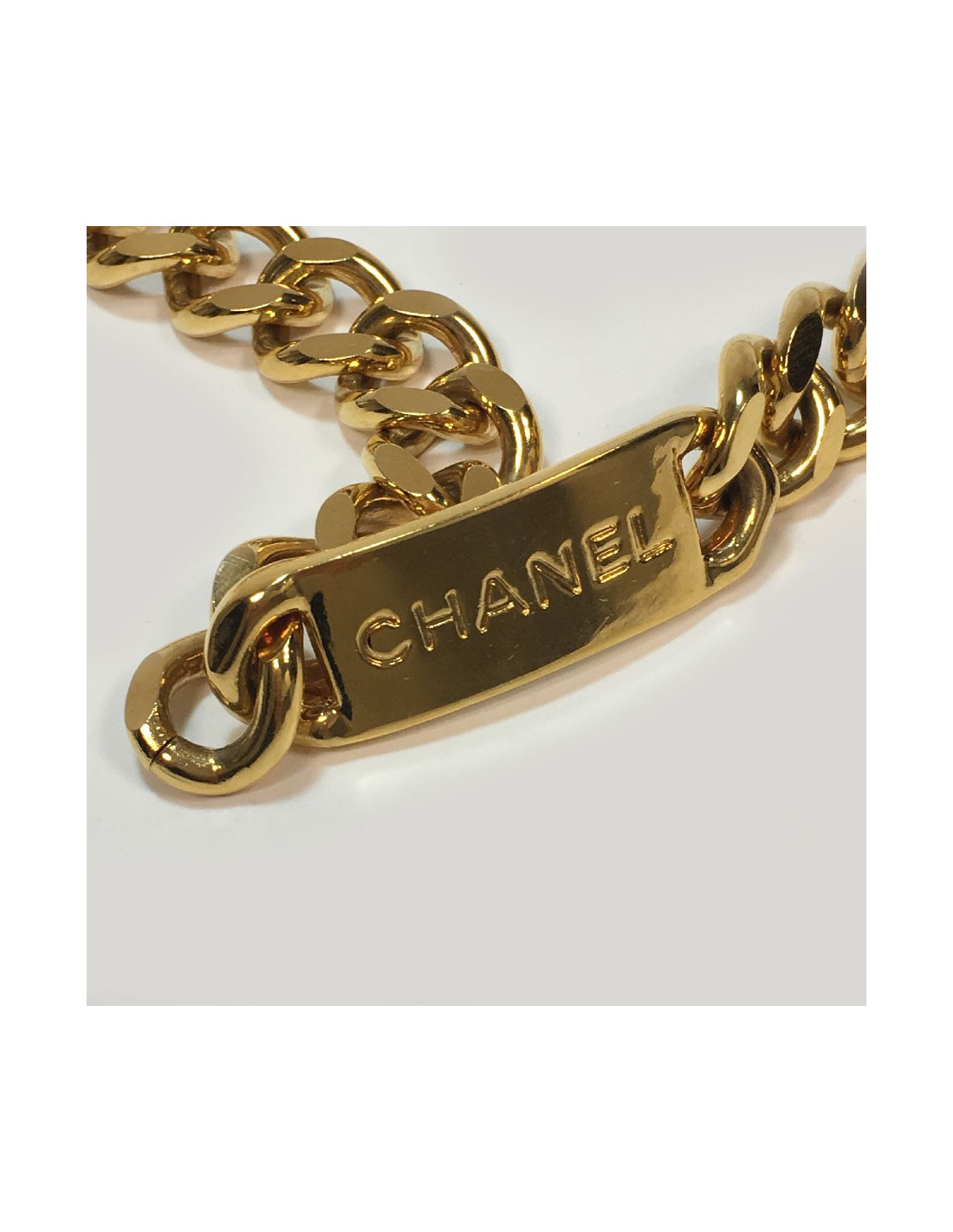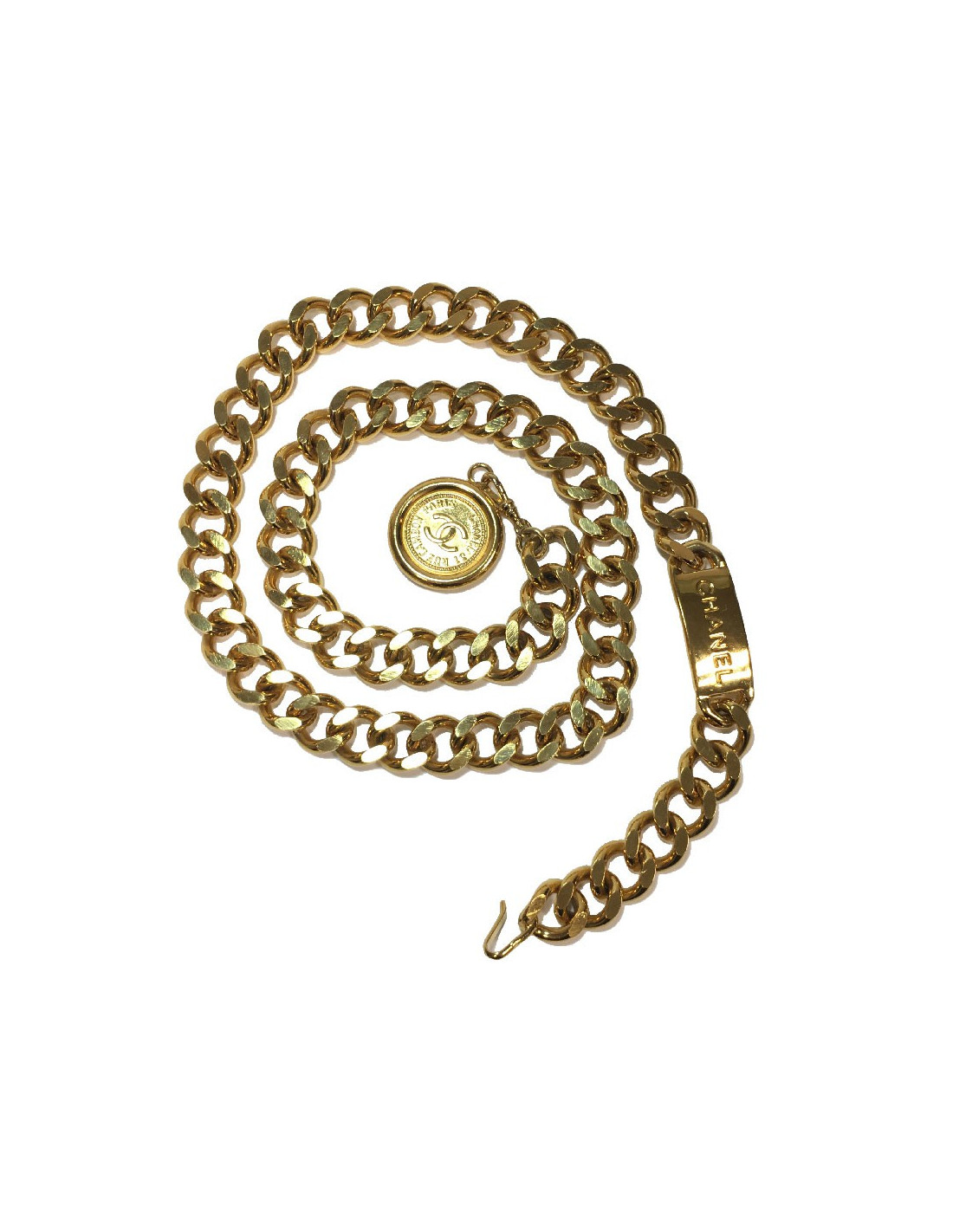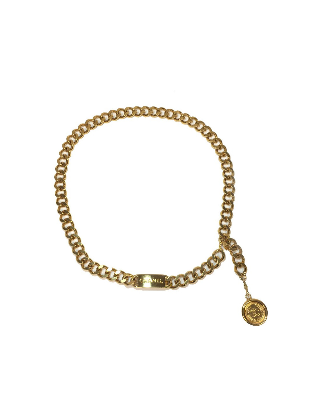 Chanel vintage chain belt, plate and medal in gold metal