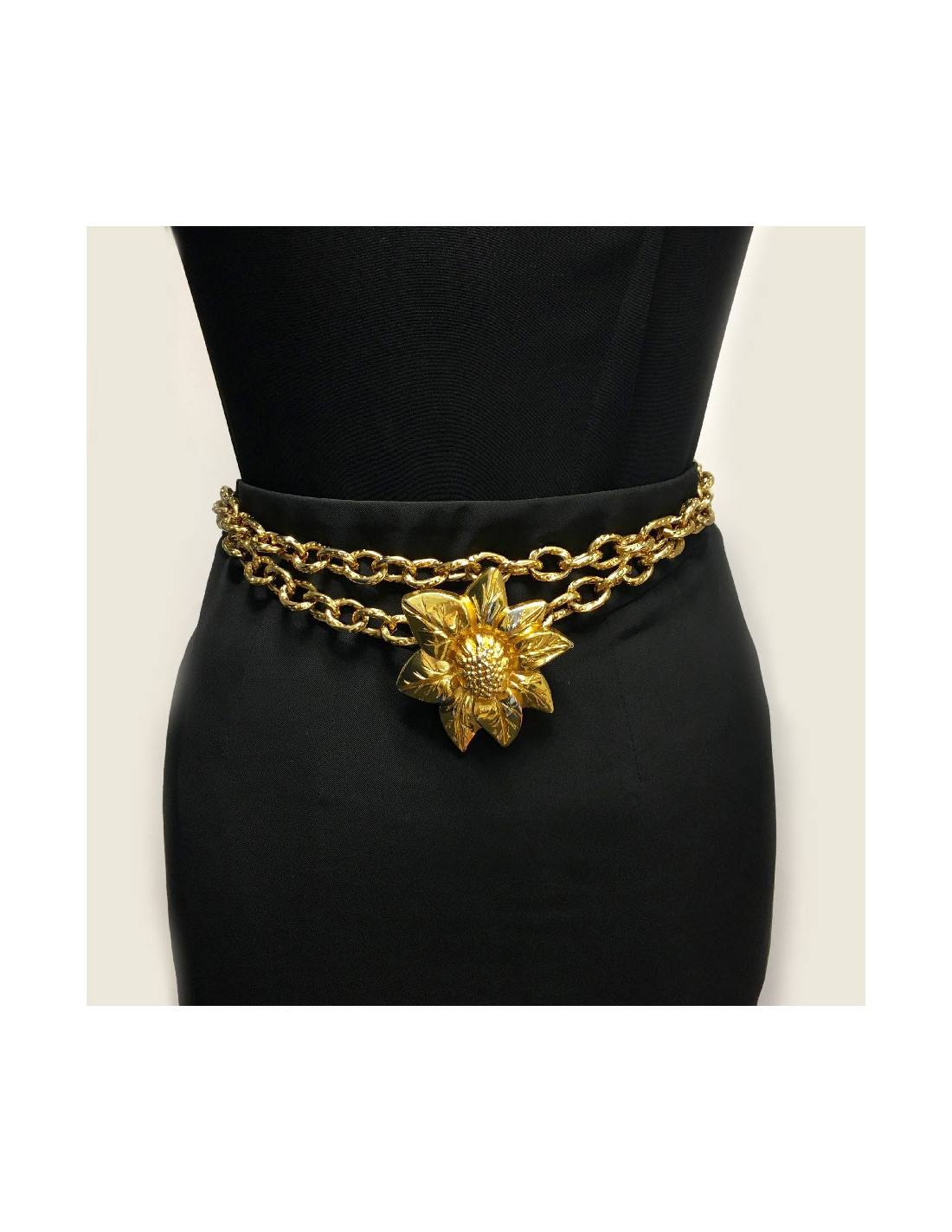 Last items in stock BELTS CHANEL Vintage couture belt CHANEL 32692 1,250.00 € CHANEL Vintage couture belt Condition : goodMade in FranceGender : womanMaterials : metal, resinColors : gold, light pinkMeasurements : length 69 cm, width 1,5 cm, chain 9 cm, pendant diameter 2,5 cmStamp : noyear : 80'sDetail : Couture collection, small round pendant in pink resin with lion's head, metal clasp slightly oxidized Add to cart