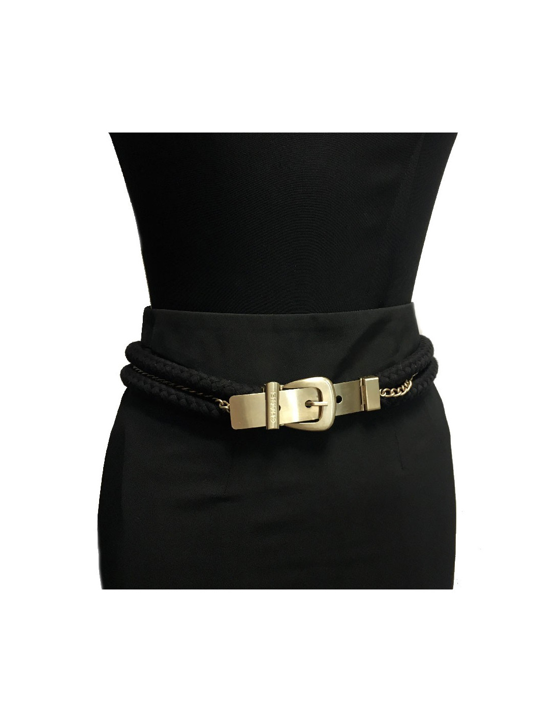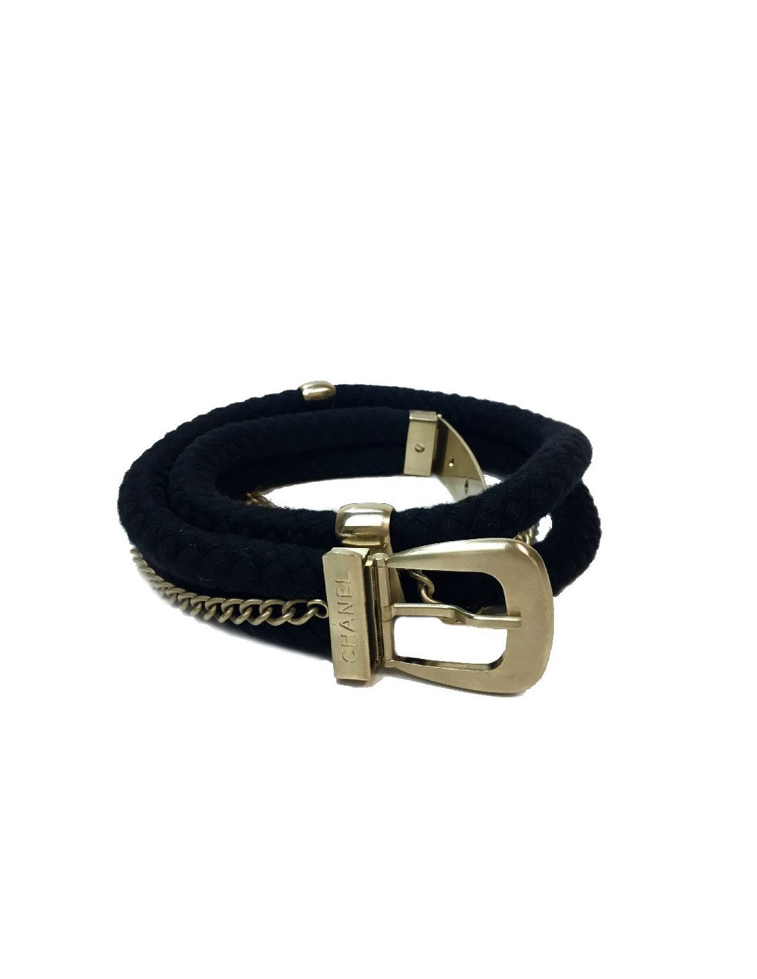 Chanel belt in black rope and matte gold metal. Superb on a long linen dress.