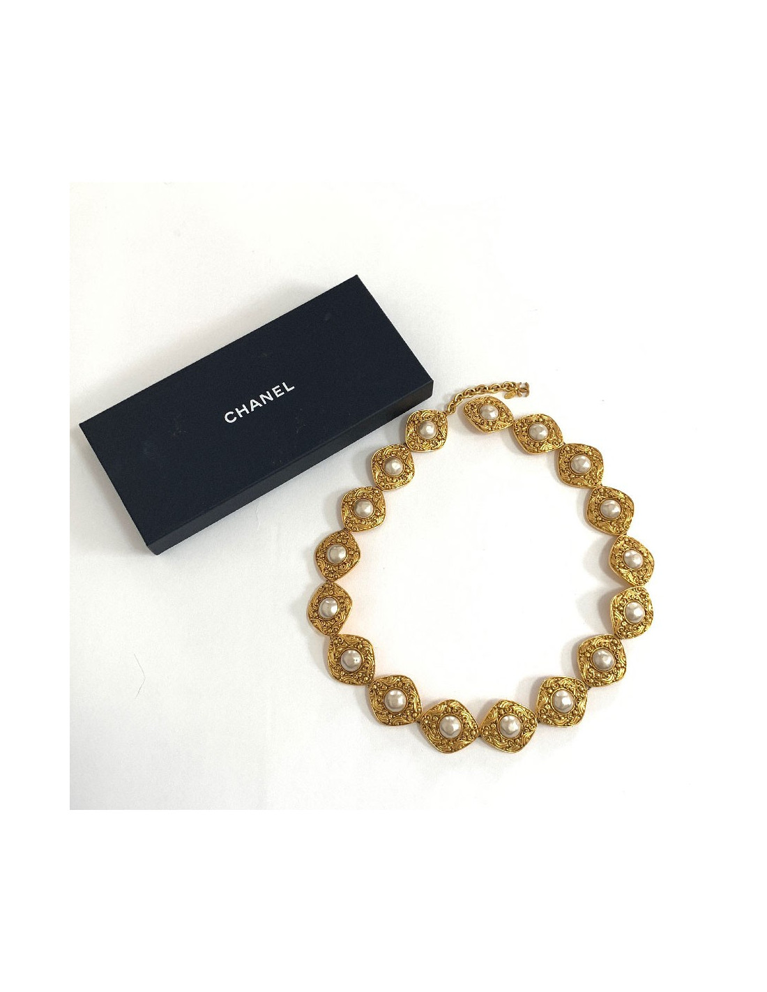 CHANEL vintage gilded metal and pearly beads belt