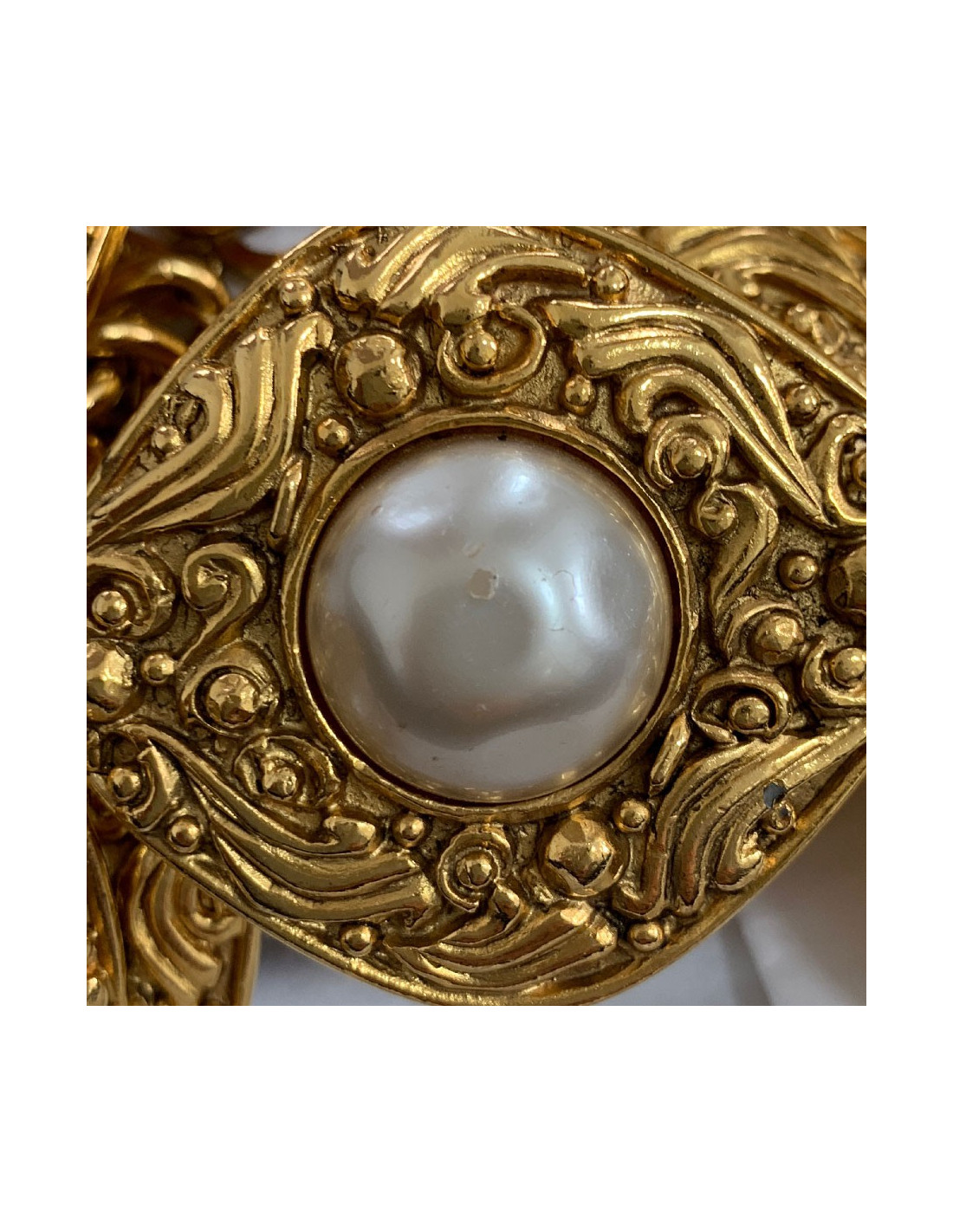 CHANEL vintage gilded metal and pearls belt, details
