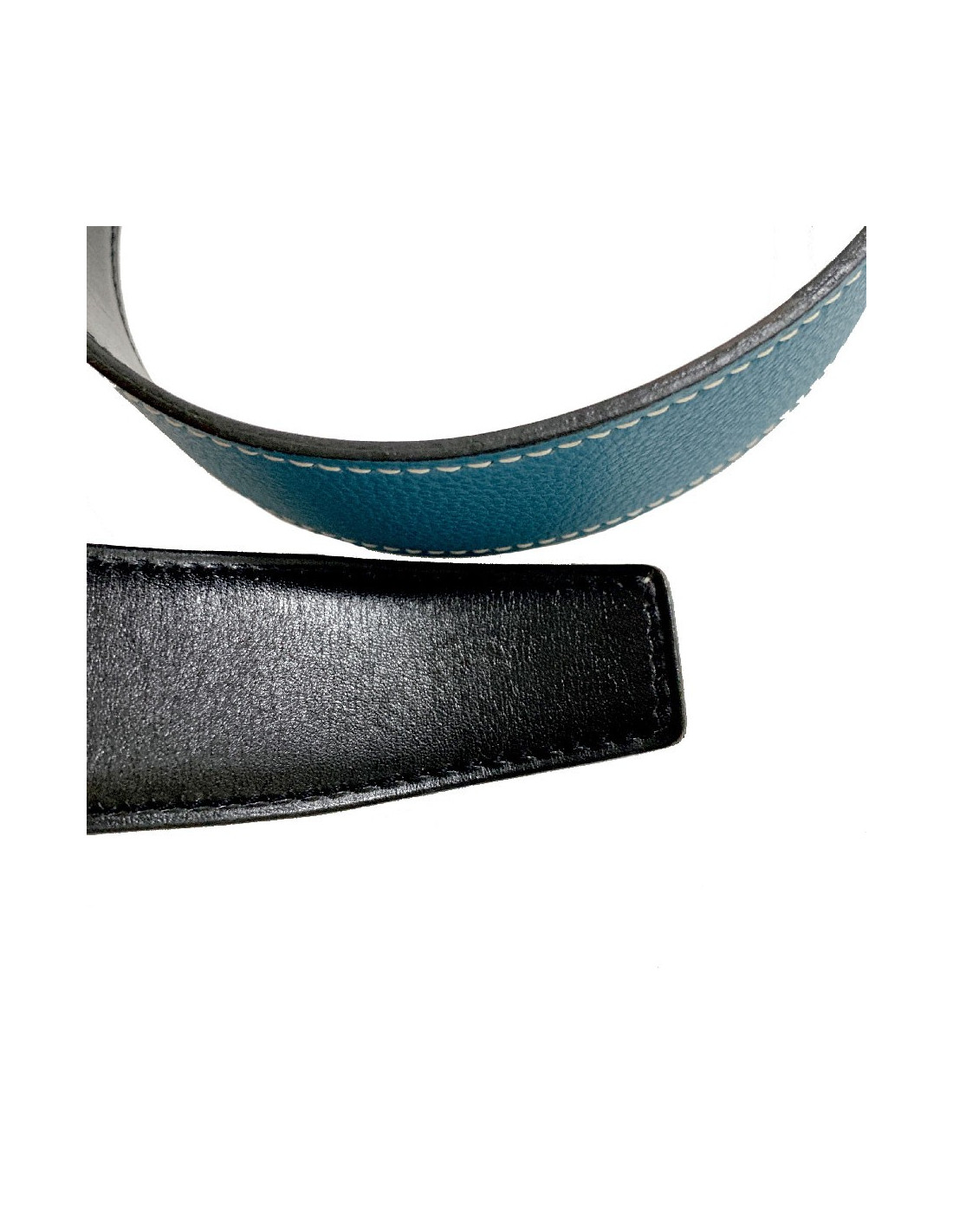 New Last items in stock BELTS Belt H vintage Hermès reversible HERMES 43080 450.00 € Hermès reversible H belt, an iconic design that remains a staple season after season. This vintage piece combines two distinct leathers: smooth black Box calfskin for a classic, refined look, and gold Epsom leather for a brighter, more structured finish.The palladium-plated "H" buckle, here in new condition, adds a clean and instantly recognizable... Add to cart