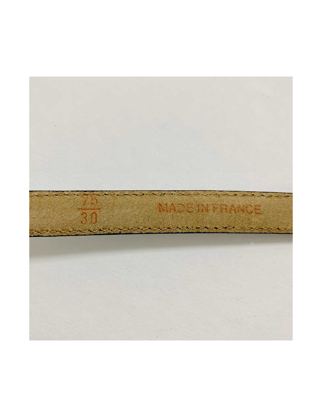 Last items in stock BELTS HERMES reversible brown Swift calfskin and cocoa Epsom calfskin H belt size 70 HERMES 20150 300.00 € HERMES reversible belt Condition: never wornMaterial Swift lambskin and Epsom leatherColors : brown, caramelMade in FranceSize : 70Measurements: width: 3.2 cm - length: at 1st hole: 67.5 cm - middle: 70 - at last hole: 72.5 cmLetter: A in a squareYear: 1997Retail price 2023 : 405€Only the leather, no buckle Advantage Valois Vintage Paris : delivered in... Add to cart