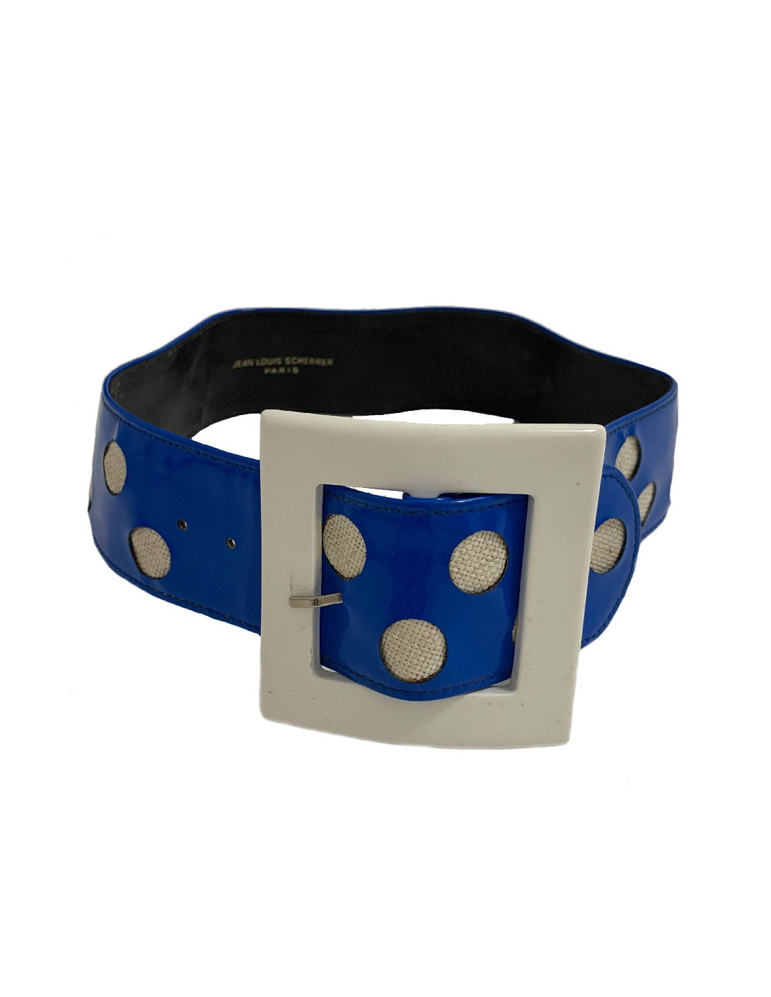 JEAN LOUIS SCHERRER vintage blue vinyl belt, details