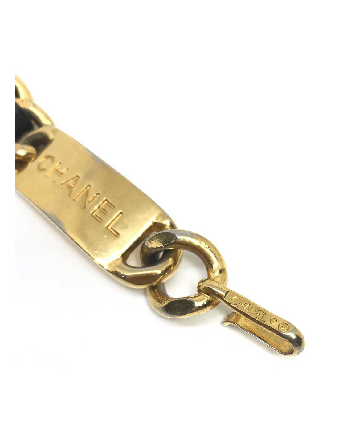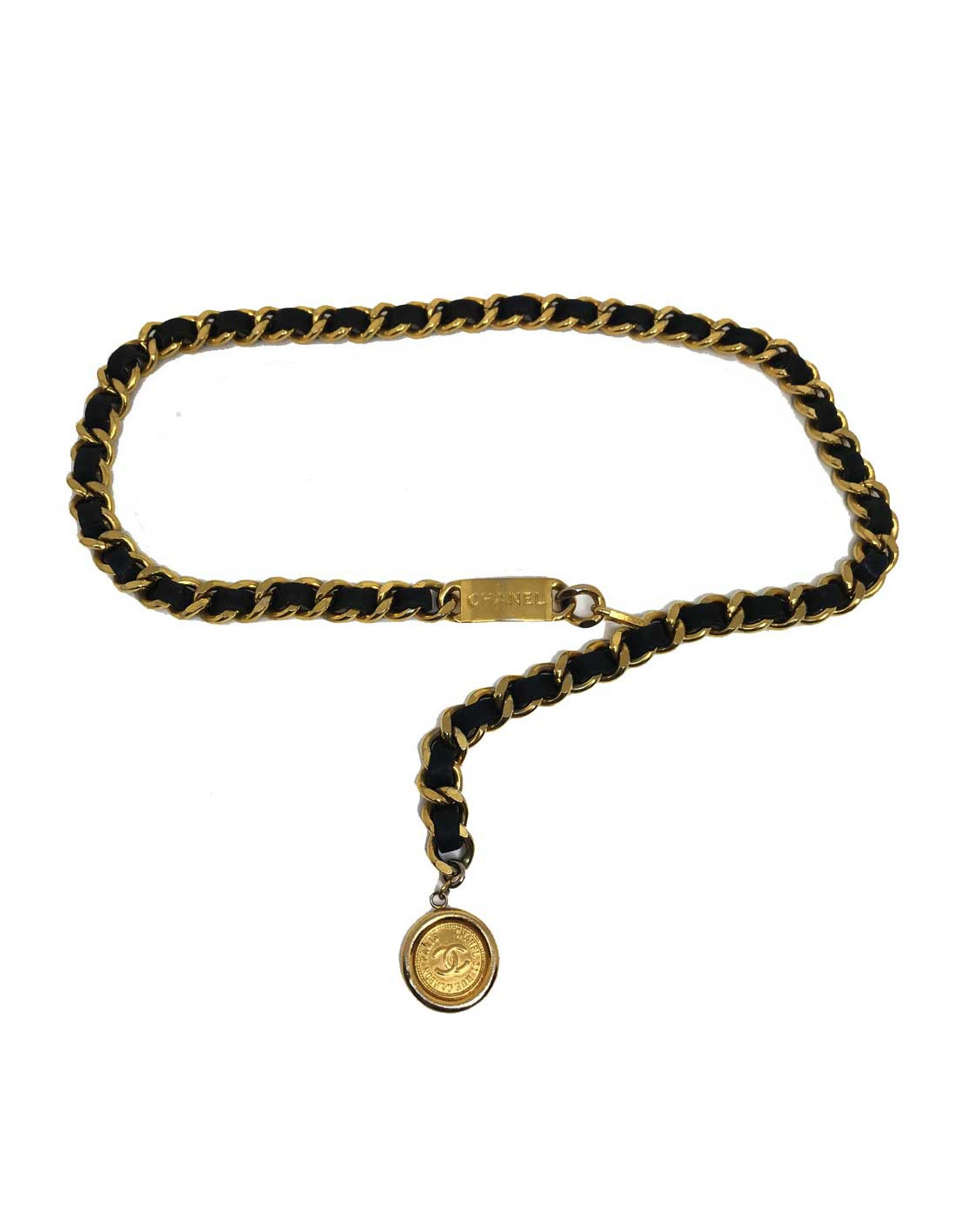 Sold BELTS CHANEL chain and leather belt CHANEL 31891 1,100.00 € CHANEL chain and leather belt Condition : very goodMade in FranceMaterials: leather, metalColors : black, goldMeasurements : 75 cmVintage Details: the leather part has been replaced. View