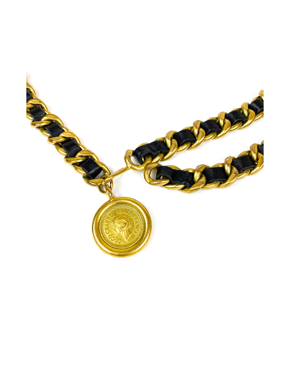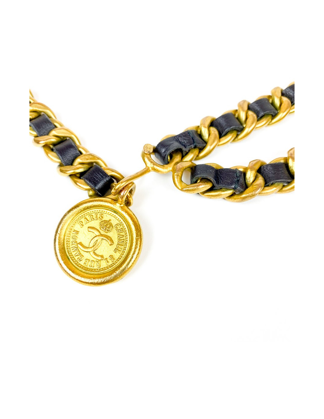Last items in stock BELTS CHANEL vintage copper chain and leather belt CHANEL 34963 1,710.00 € CHANEL vintage charms CC belt Fall 1997 Condition : very goodGender : womanCollection : beltMaterials : metal, leatherColors : copper, brownMeasurements : total length 82 cm, width 2 cmStamp : yesYear : Fall 1997Hardware: aged copper finish metalDetails : Vintage belt with 8 CC charms. Hook clasp, Chanel signature on top. Belt adjusts to 14 cm. Add to cart