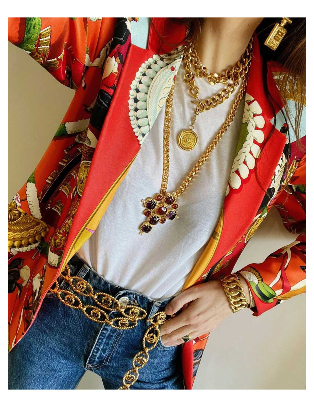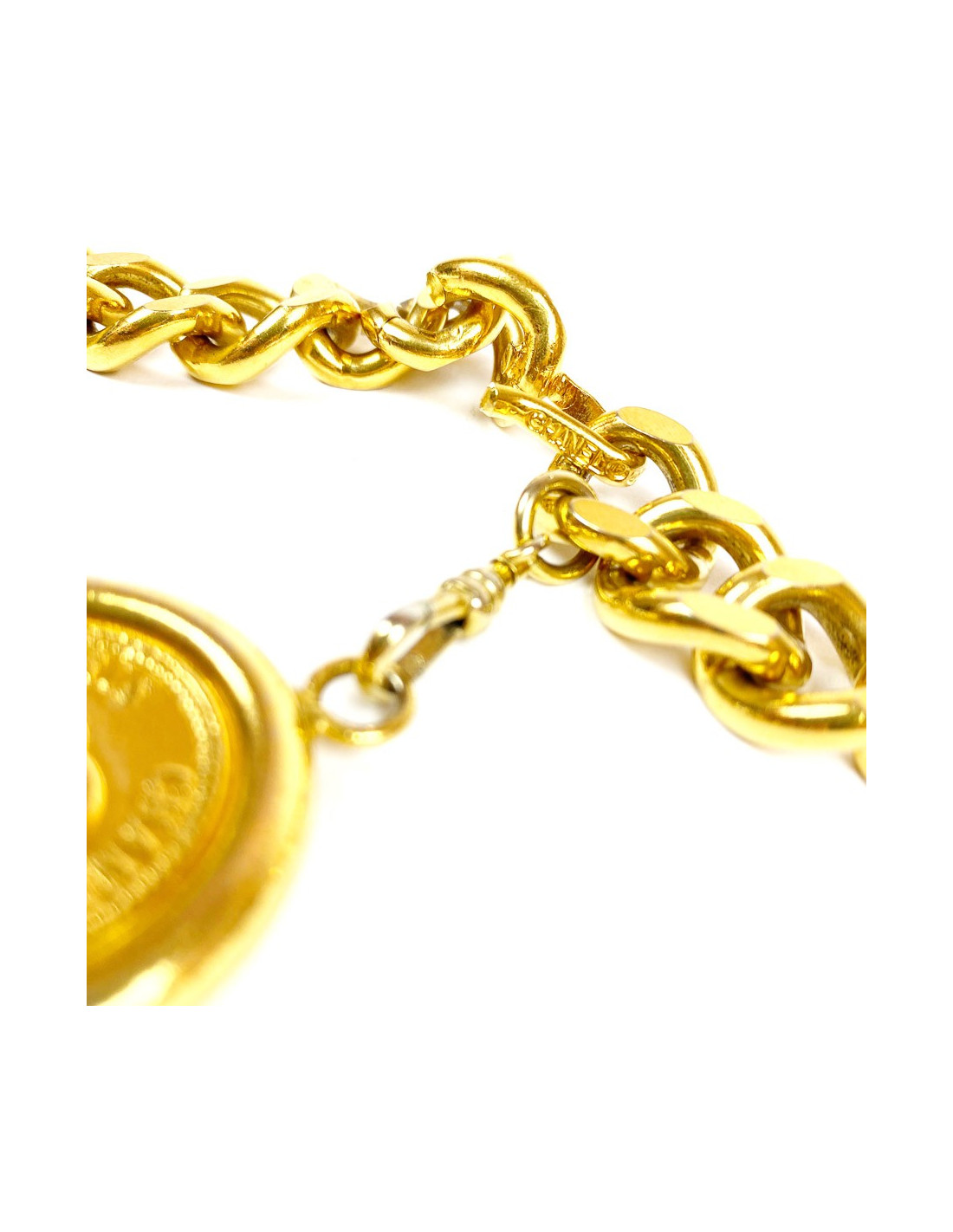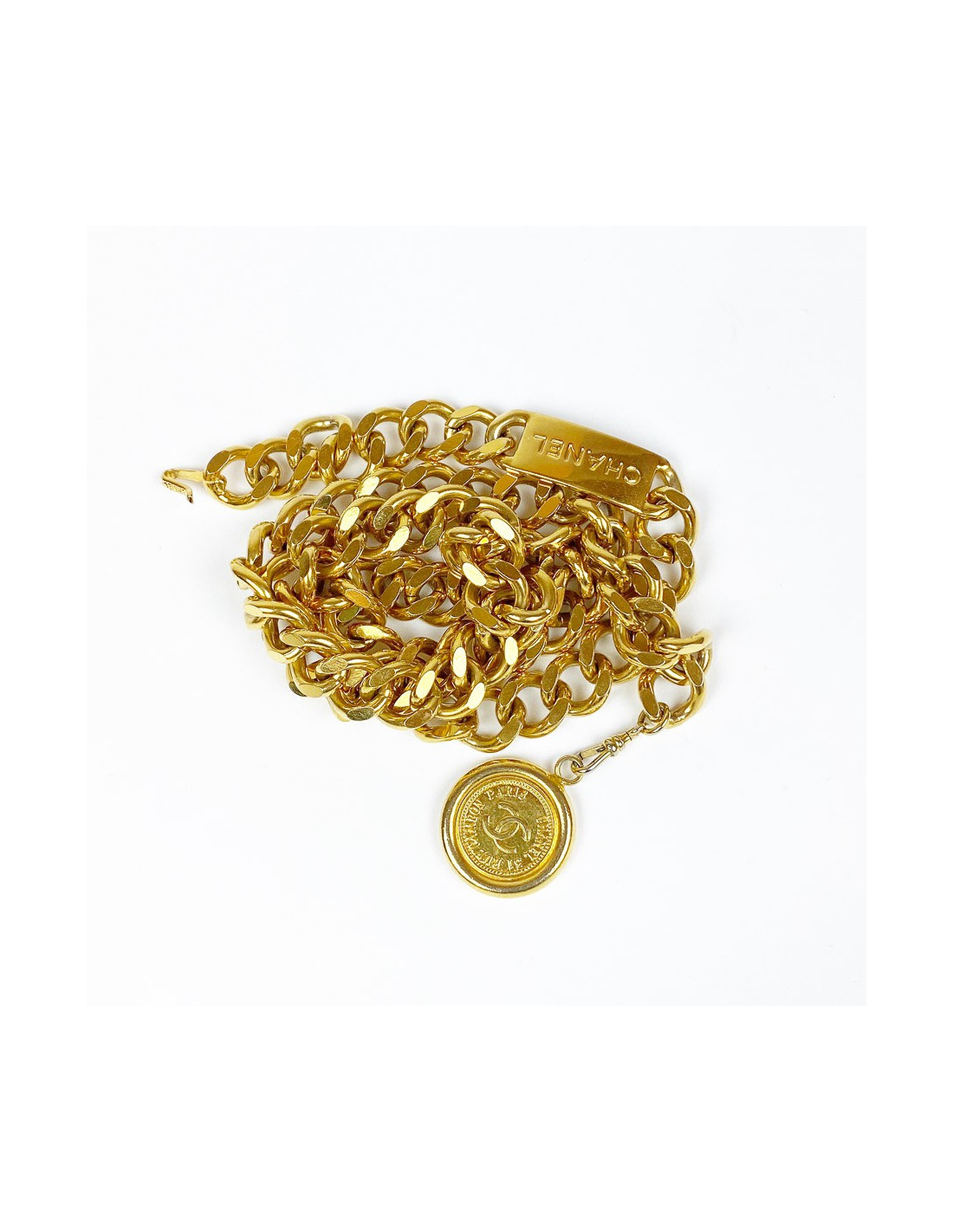Last items in stock BELTS CHANEL Couture lion's head belt CHANEL 32689 2,800.00 € CHANEL Couture Vintage lion's head belt Condition : very goodMade in FranceGender : womanMaterials : metal, leatherColors : gold, burgundyMeasurements : total length of chain 68 cm, height : 2 cm, pendant's length : 10 cm, diameter : 3,5 cmStamp : noYear : vintage circa ‘80Hardware : gold finish metalDetails : Couture collection Add to cart