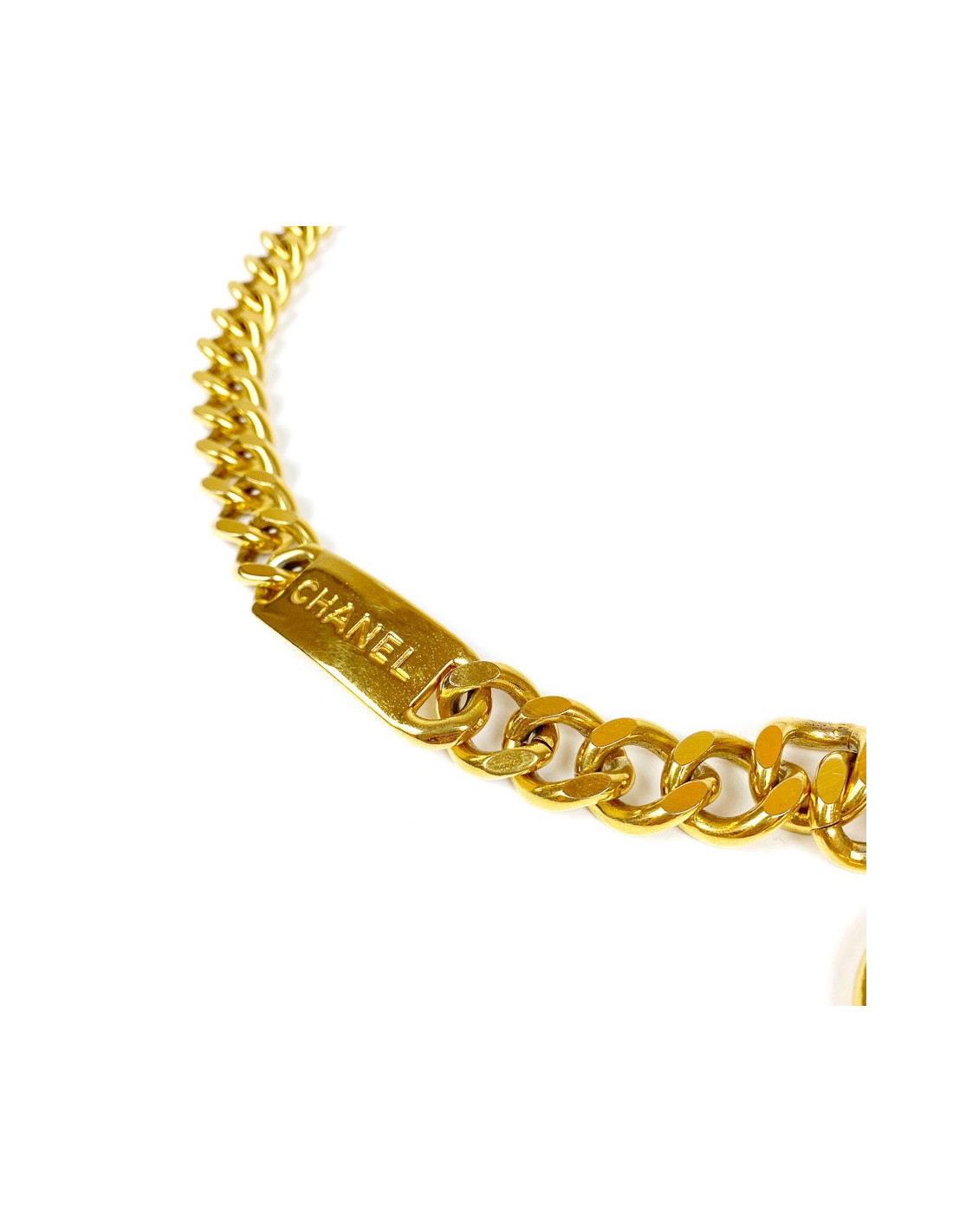 Last items in stock BELTS CHANEL Couture molten glass belt CHANEL 32686 2,570.00 € CHANEL Couture handmade belt Condition : very goodMade in FranceGender : womanMaterials : metal mesh, molten glassColors : gold, amethyst, emeraldSize: 75FRMeasurements : total length 75 cm (non-adjustable) x height 5 cm, molten glass brooch : 5 x 5 cmStamp : yesYear : 1996Hardware : gold finish metalDetails : hook clasp, large two-tone molten glass... Add to cart