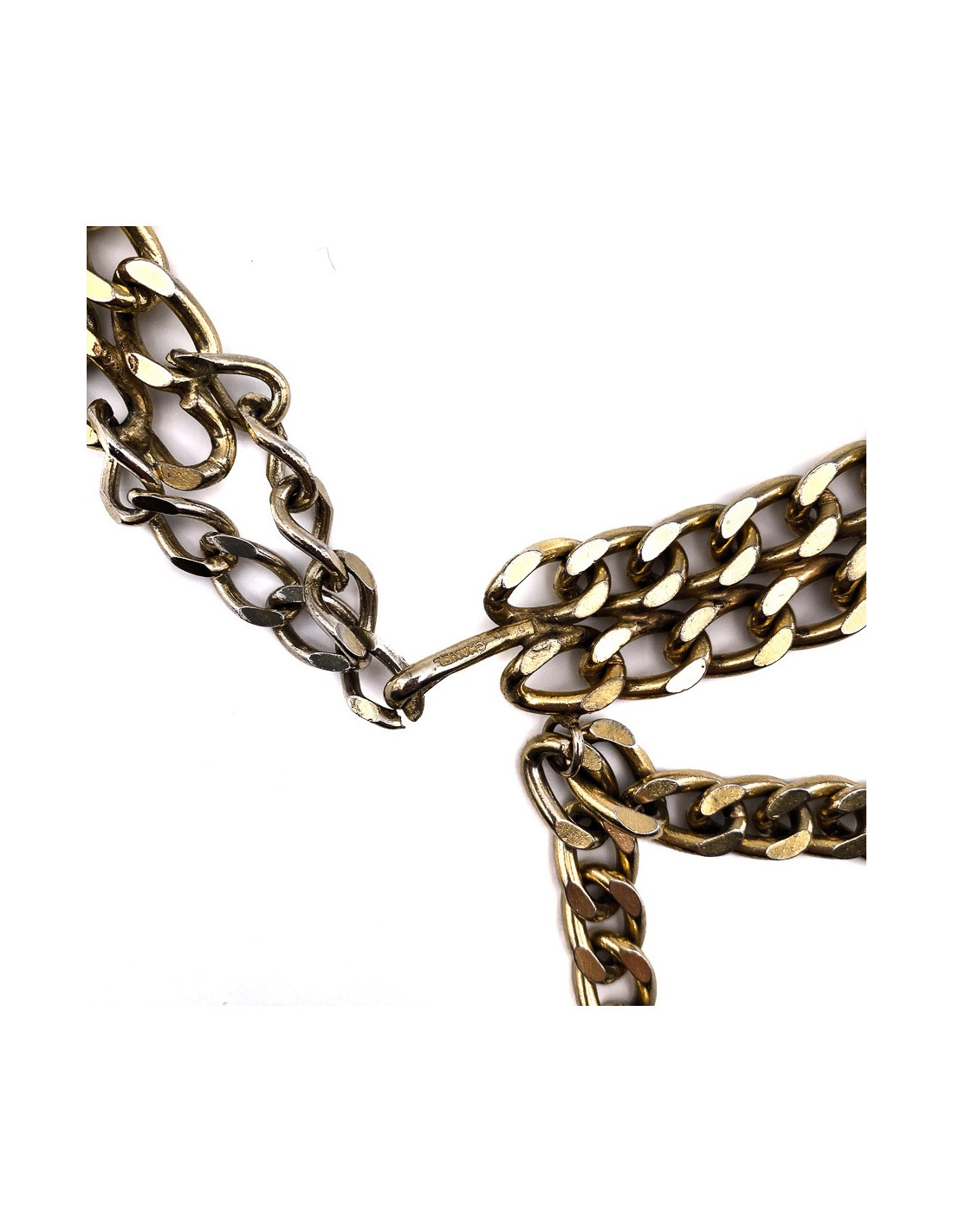 Sold BELTS CHANEL vintage articulated belt in gilded metal CHANEL 23252 1,190.00 € Chanel articulated belt in gilded metal. Hook clasp. Vintage accessory in good condition. Minimal micro-scratches on the entire belt. Dimensions: total length: 76 cm, width: 1.5 cm Will be delivered in its Chanel box View