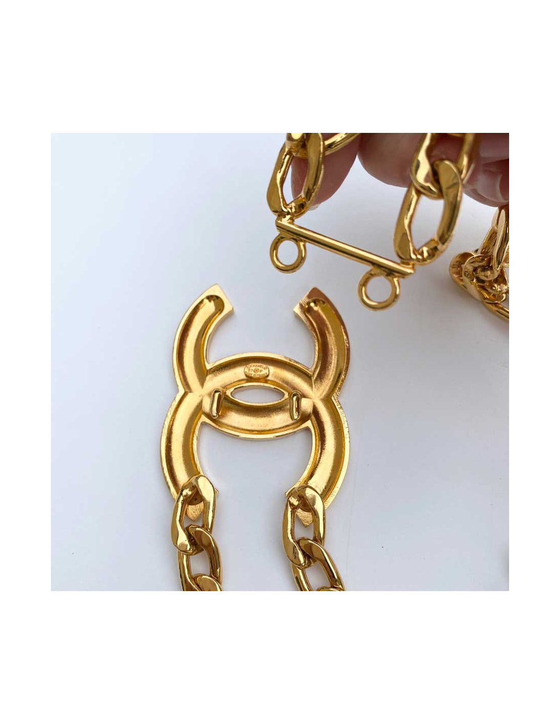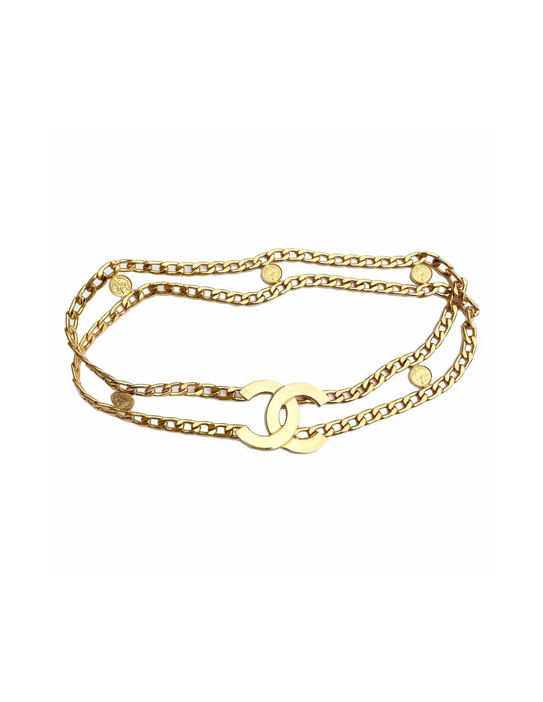 -250.00 € Last items in stock BELTS CHANEL vintage gilded quilted chain belt CHANEL 31956 1,250.00 € 1,500.00 € CHANEL vintage gilded hammered chain belt Condition : very goodMade in FranceMaterial: metalColor : goldMeasurements : 85 cmHardware : gold finish metalStamp : yesVintage prior to 1990 Add to cart