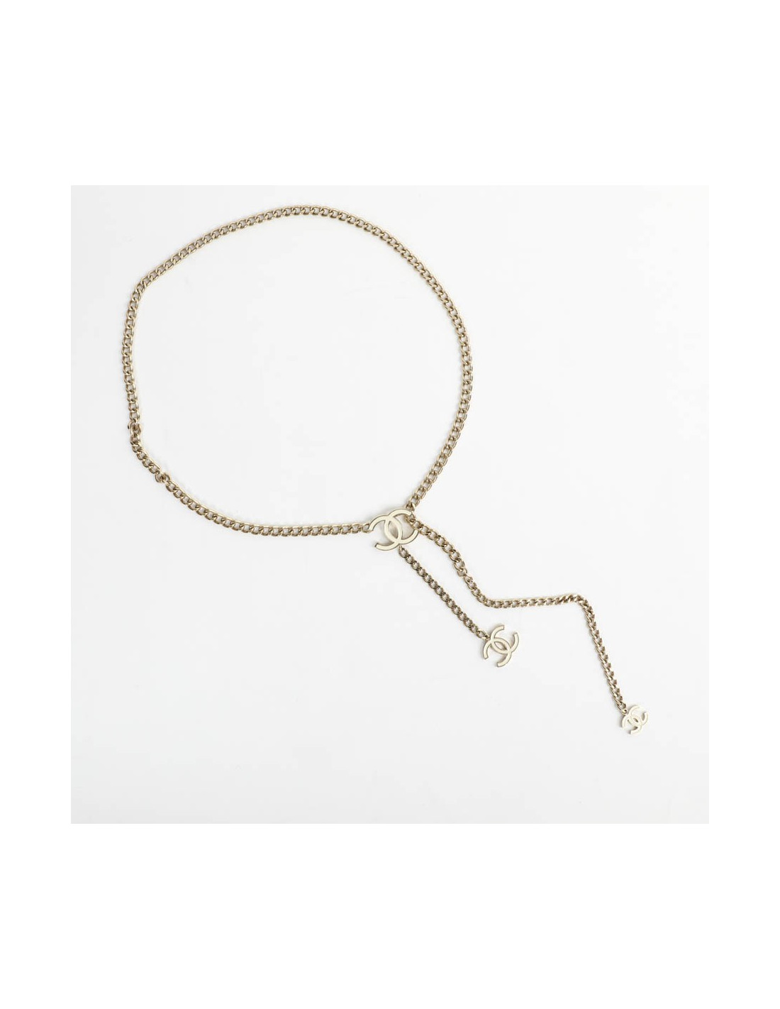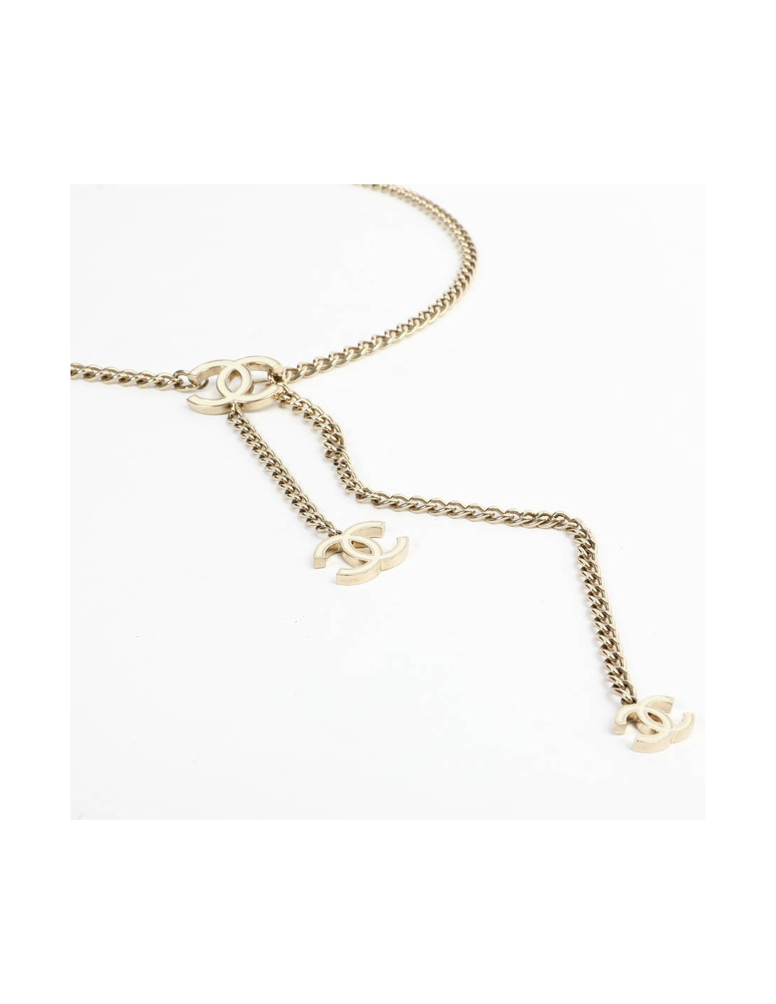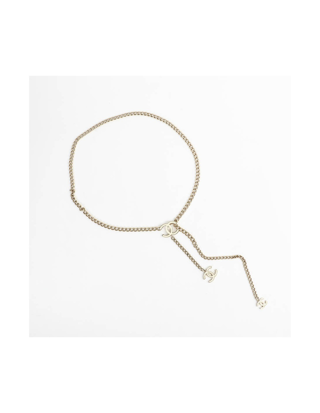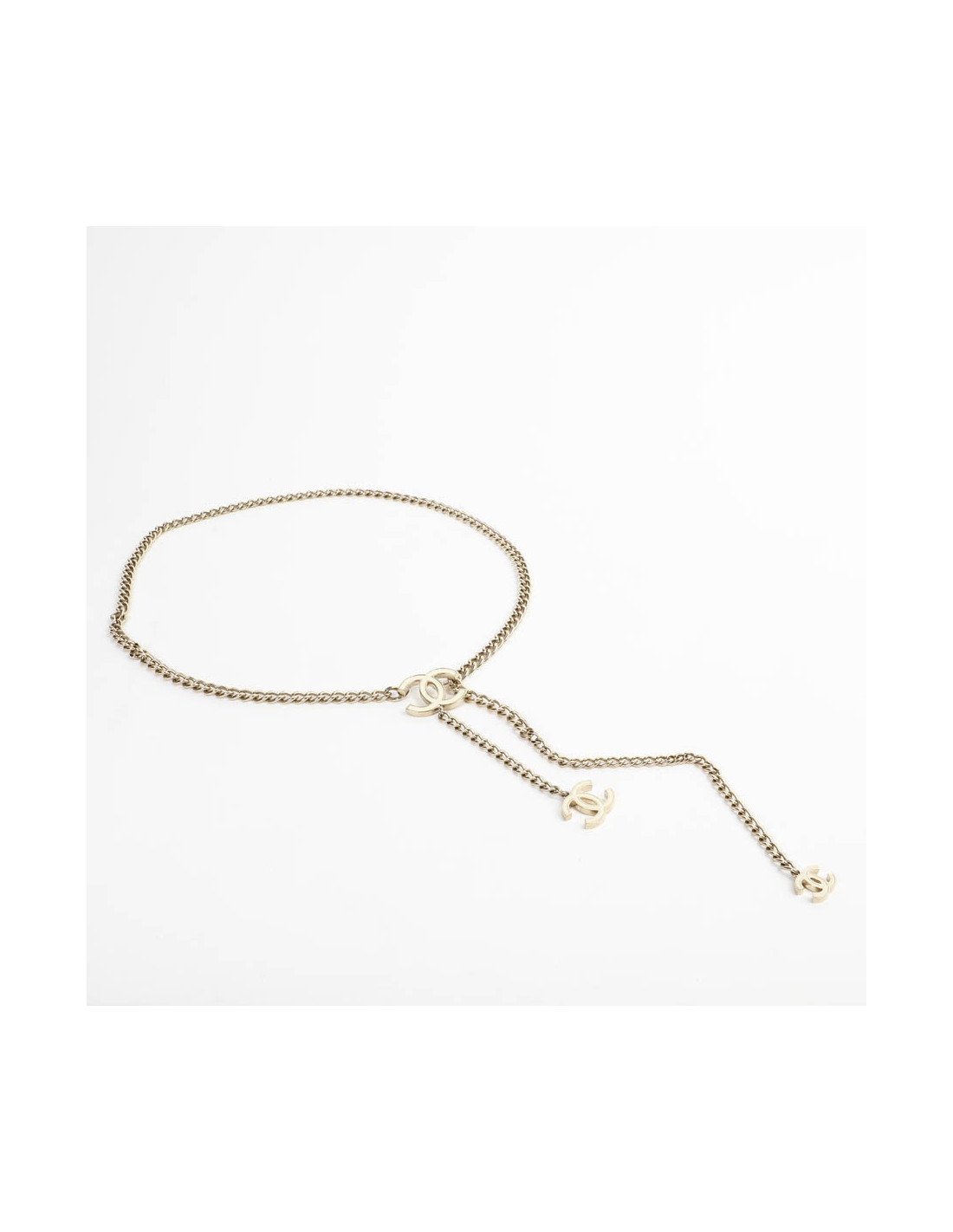 New Last items in stock BELTS Ceinture Chanel triple chaînes dorées à médaillons CC CHANEL 43108 1,850.00 € Step back in time to the glamorous era of 1984 with this exquisite Chanel triple chain belt. A testament to Gabrielle 'Coco' Chanel's enduring legacy, this stunning accessory features three elegant gold-toned chains, meticulously crafted to drape gracefully around the waist or hips. The design is punctuated by two iconic circular medallions embossed with... Add to cart