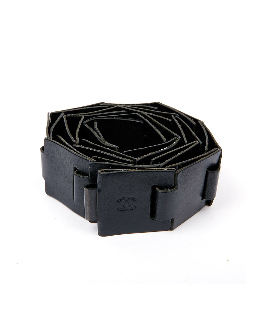 Last items in stock BELTS CHANEL Couture molten glass belt CHANEL 32686 2,570.00 € CHANEL Couture handmade belt Condition : very goodMade in FranceGender : womanMaterials : metal mesh, molten glassColors : gold, amethyst, emeraldSize: 75FRMeasurements : total length 75 cm (non-adjustable) x height 5 cm, molten glass brooch : 5 x 5 cmStamp : yesYear : 1996Hardware : gold finish metalDetails : hook clasp, large two-tone molten glass... Add to cart