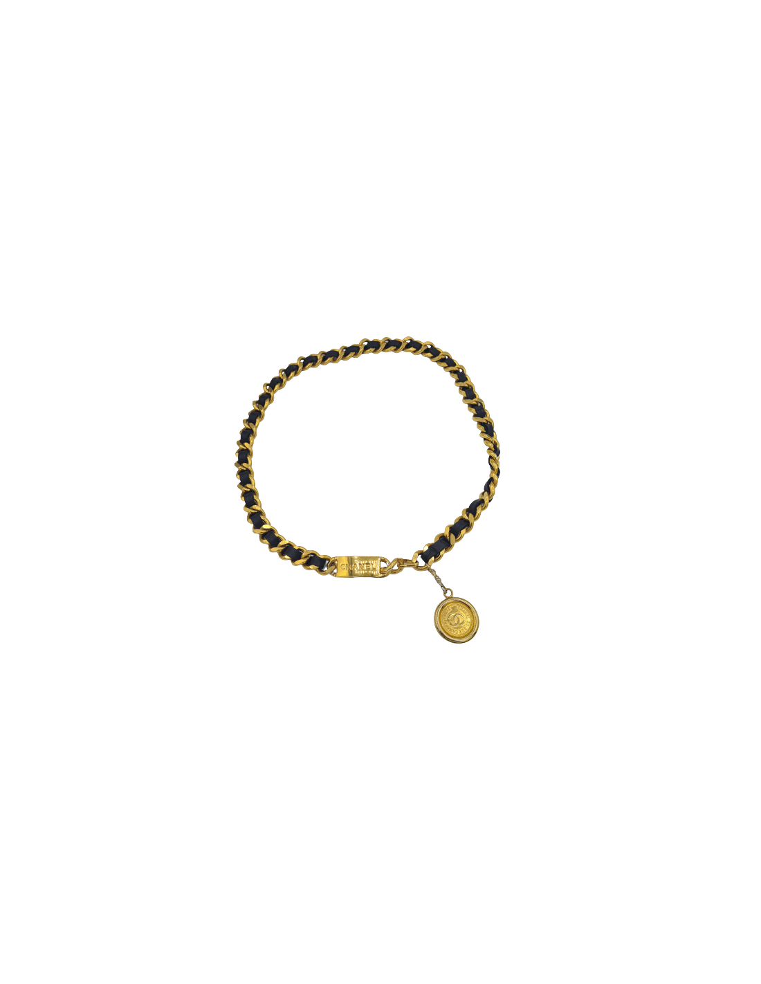 Sold BELTS CHANEL chain and leather belt CHANEL 31891 1,100.00 € CHANEL chain and leather belt Condition : very goodMade in FranceMaterials: leather, metalColors : black, goldMeasurements : 75 cmVintage Details: the leather part has been replaced. View