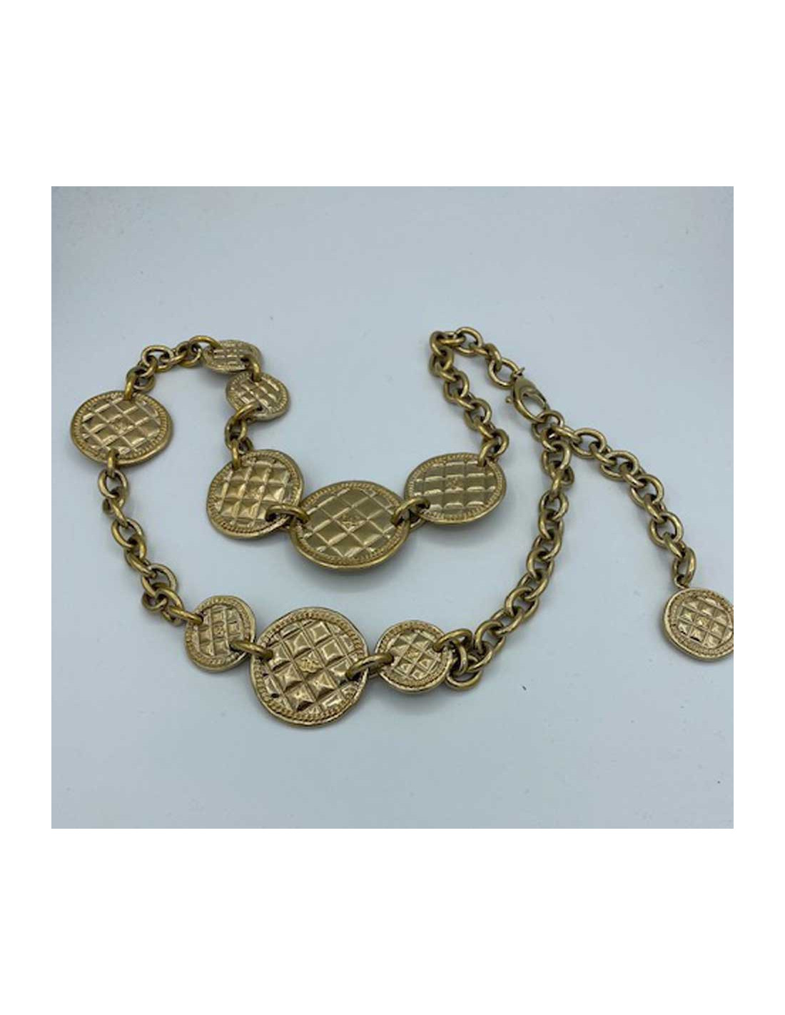 Last items in stock NECKLACES CHRISTIAN DIOR charms belt-necklace DIOR 36876 1,150.00 € CHRISTIAN DIOR vintage belt-necklace Condition : very goodMade in FranceMaterials : metal, rhinestonesColor : goldMeasurements : total length: 80 cm, width : 2.5 cmStamp : yesDetails : Can be worn as a necklace or belt, adjustable with a toggle clasp. No rhinestones are missing on these charms. Add to cart