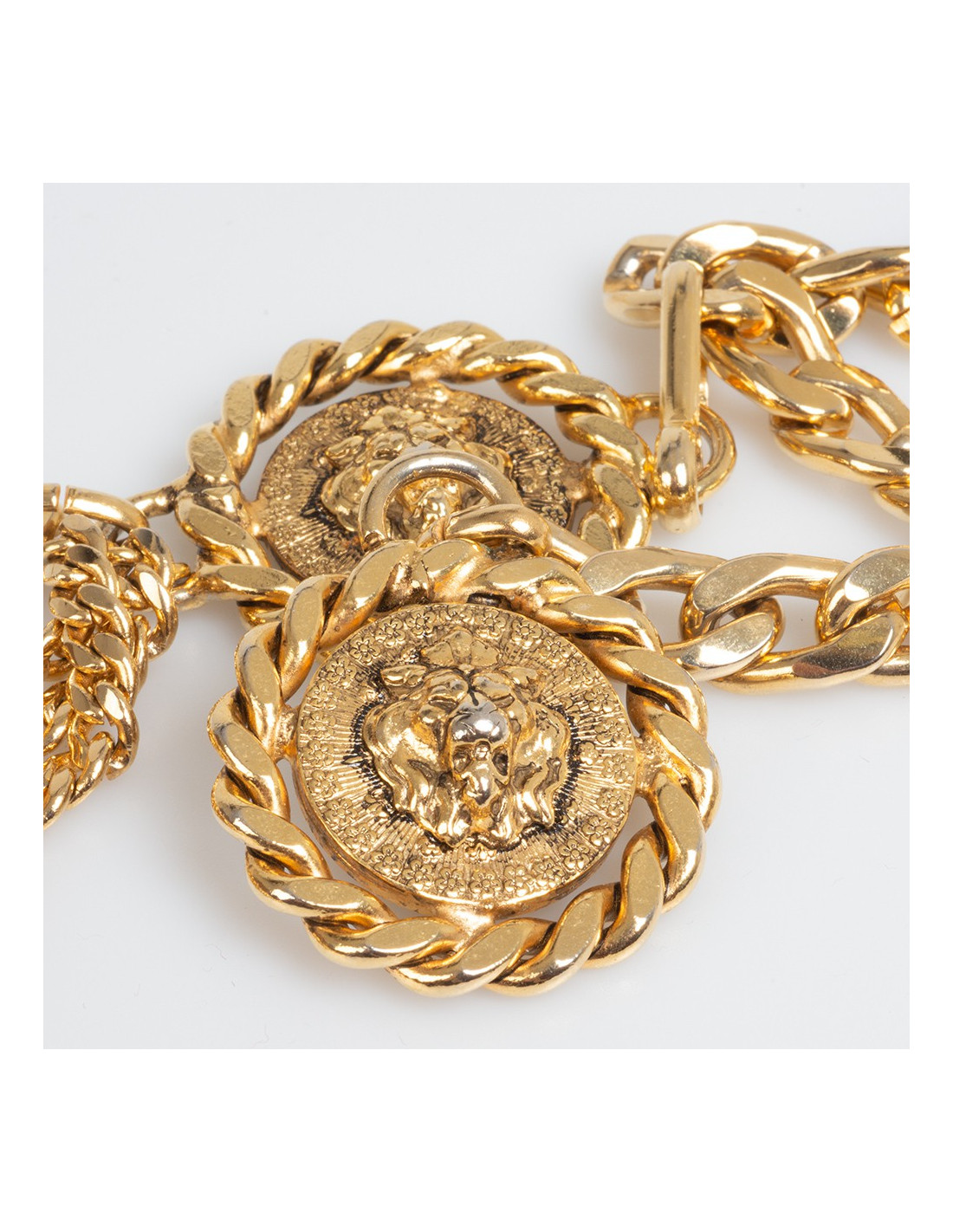 Last items in stock BELTS CHANEL vintage gilded metal and plaited brown leather belt CHANEL 20950 790.00 € CHANEL vintage gilded metal and plaited brown leather belt Condition: goodMaterials: leather, metalColors: gold, brownHardware: gold finish metalMeasurements: total length: 82.5cm, width: 2cmDetails: Beautiful Chanel belt in gilded metal interlaced with brown braided leather. Vintage belt. Good condition. The gilding has faded on the rings. Hook clasp. CC... Add to cart