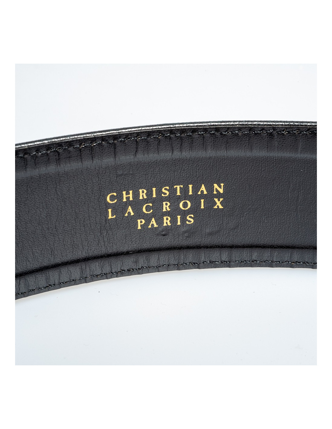 Last items in stock BELTS CHANEL Couture molten glass belt CHANEL 32686 2,570.00 € CHANEL Couture handmade belt Condition : very goodMade in FranceGender : womanMaterials : metal mesh, molten glassColors : gold, amethyst, emeraldSize: 75FRMeasurements : total length 75 cm (non-adjustable) x height 5 cm, molten glass brooch : 5 x 5 cmStamp : yesYear : 1996Hardware : gold finish metalDetails : hook clasp, large two-tone molten glass... Add to cart