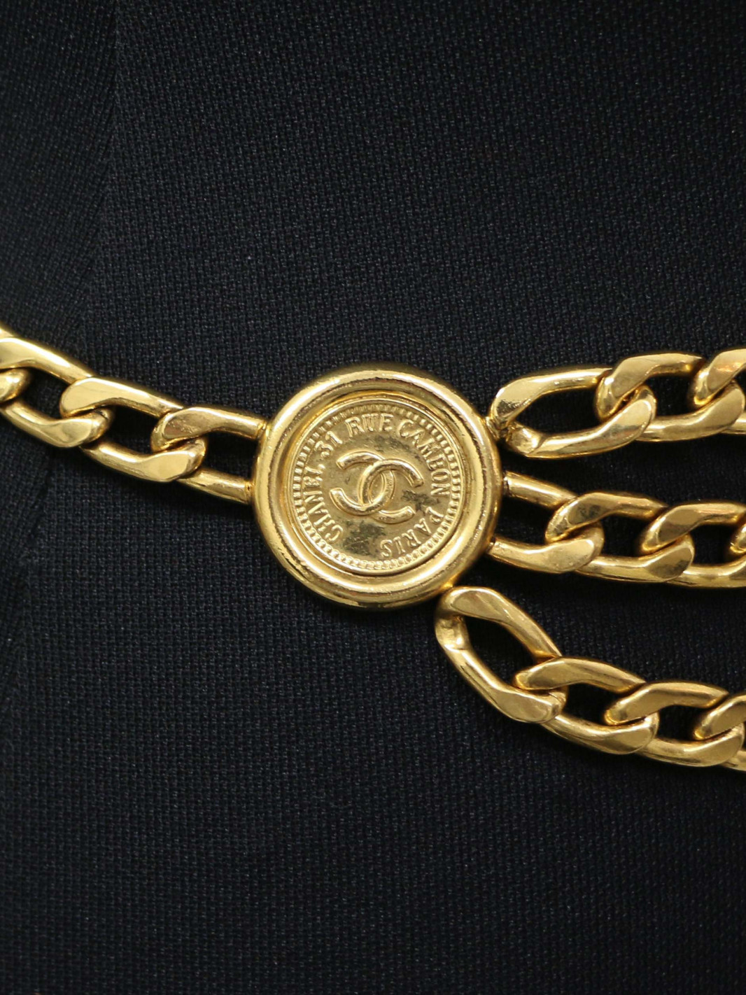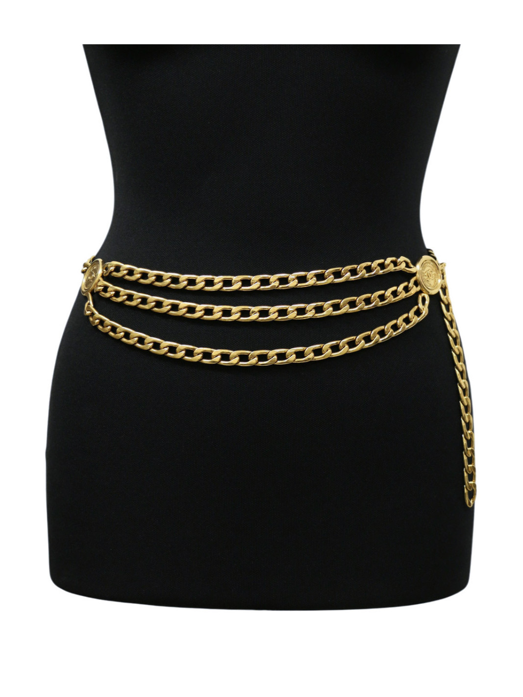 Last items in stock BELTS CHANEL Couture lion's head belt CHANEL 32689 2,800.00 € CHANEL Couture Vintage lion's head belt Condition : very goodMade in FranceGender : womanMaterials : metal, leatherColors : gold, burgundyMeasurements : total length of chain 68 cm, height : 2 cm, pendant's length : 10 cm, diameter : 3,5 cmStamp : noYear : vintage circa ‘80Hardware : gold finish metalDetails : Couture collection Add to cart