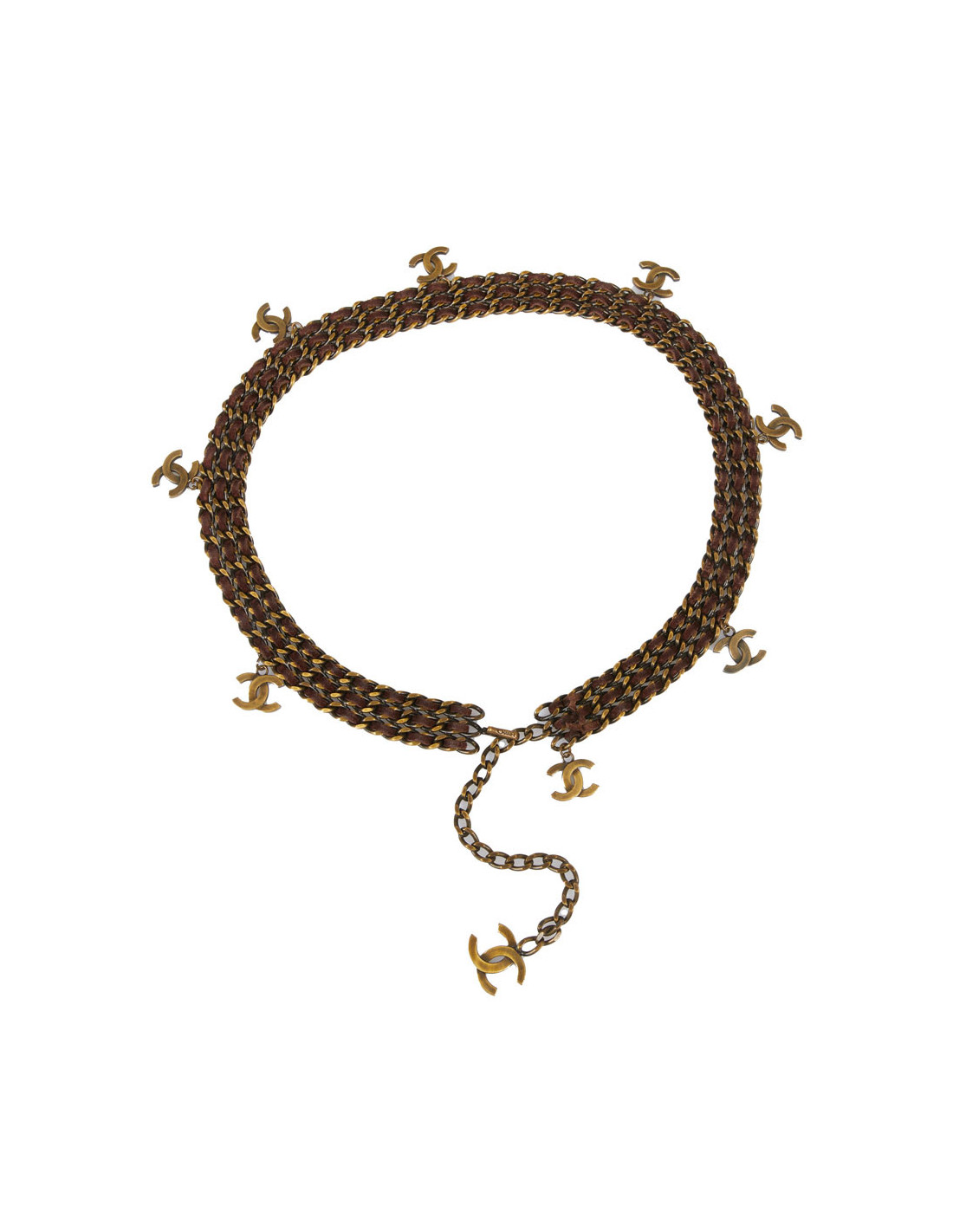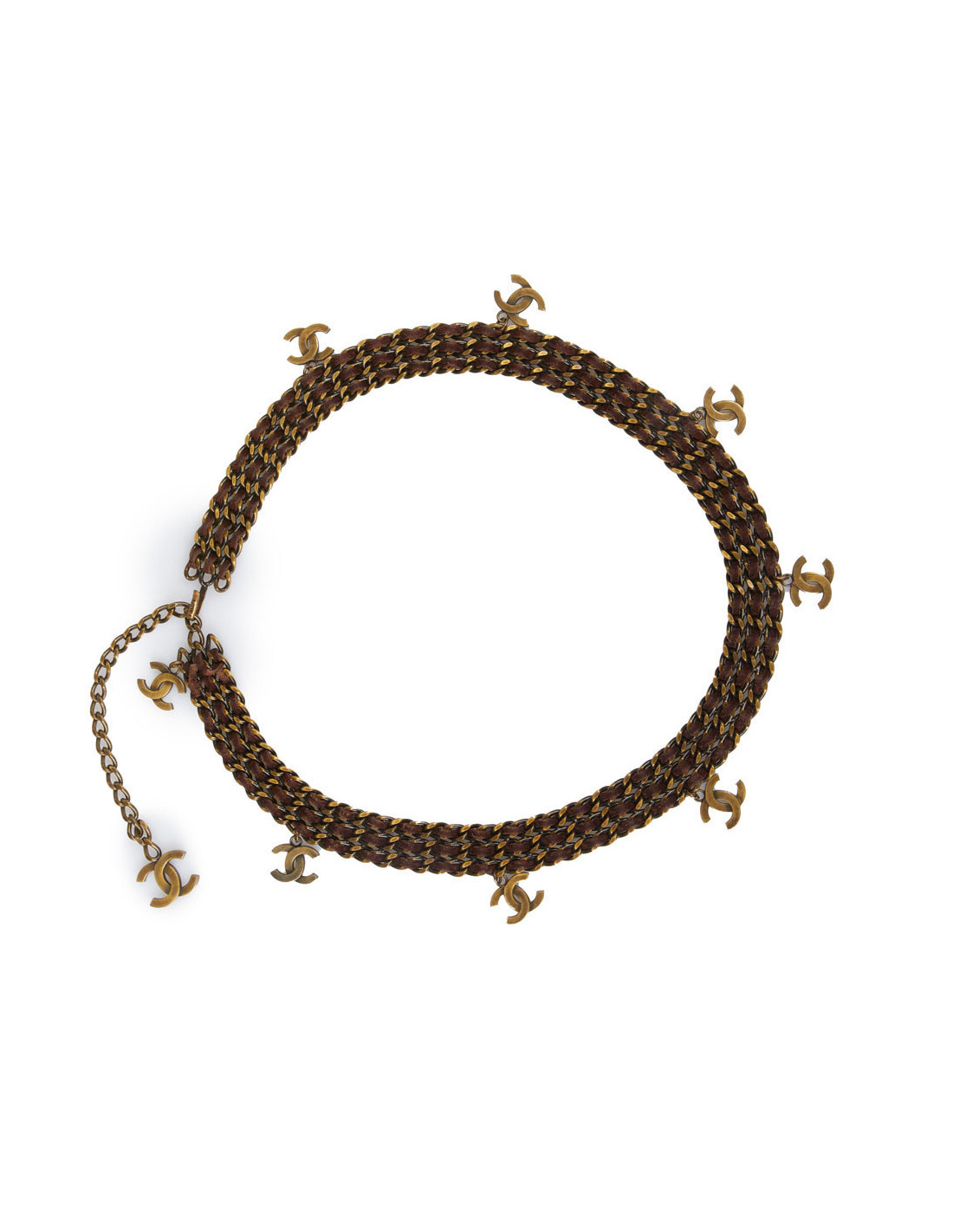 Details : Vintage belt with 8 CC charms. Hook clasp, Chanel signature on top. Belt adjusts to 14 cm.