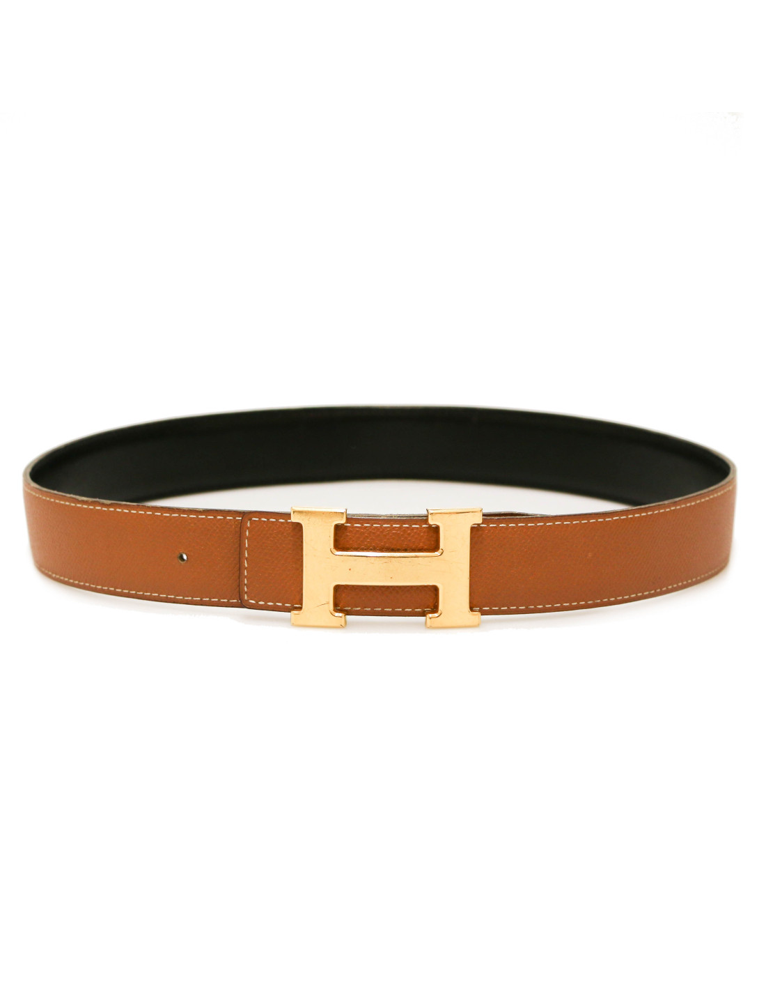 Last items in stock BELTS HERMES reversible brown Swift calfskin and cocoa Epsom calfskin H belt size 70 HERMES 20150 300.00 € HERMES reversible belt Condition: never wornMaterial Swift lambskin and Epsom leatherColors : brown, caramelMade in FranceSize : 70Measurements: width: 3.2 cm - length: at 1st hole: 67.5 cm - middle: 70 - at last hole: 72.5 cmLetter: A in a squareYear: 1997Retail price 2023 : 405€Only the leather, no buckle Advantage Valois Vintage Paris : delivered in... Add to cart