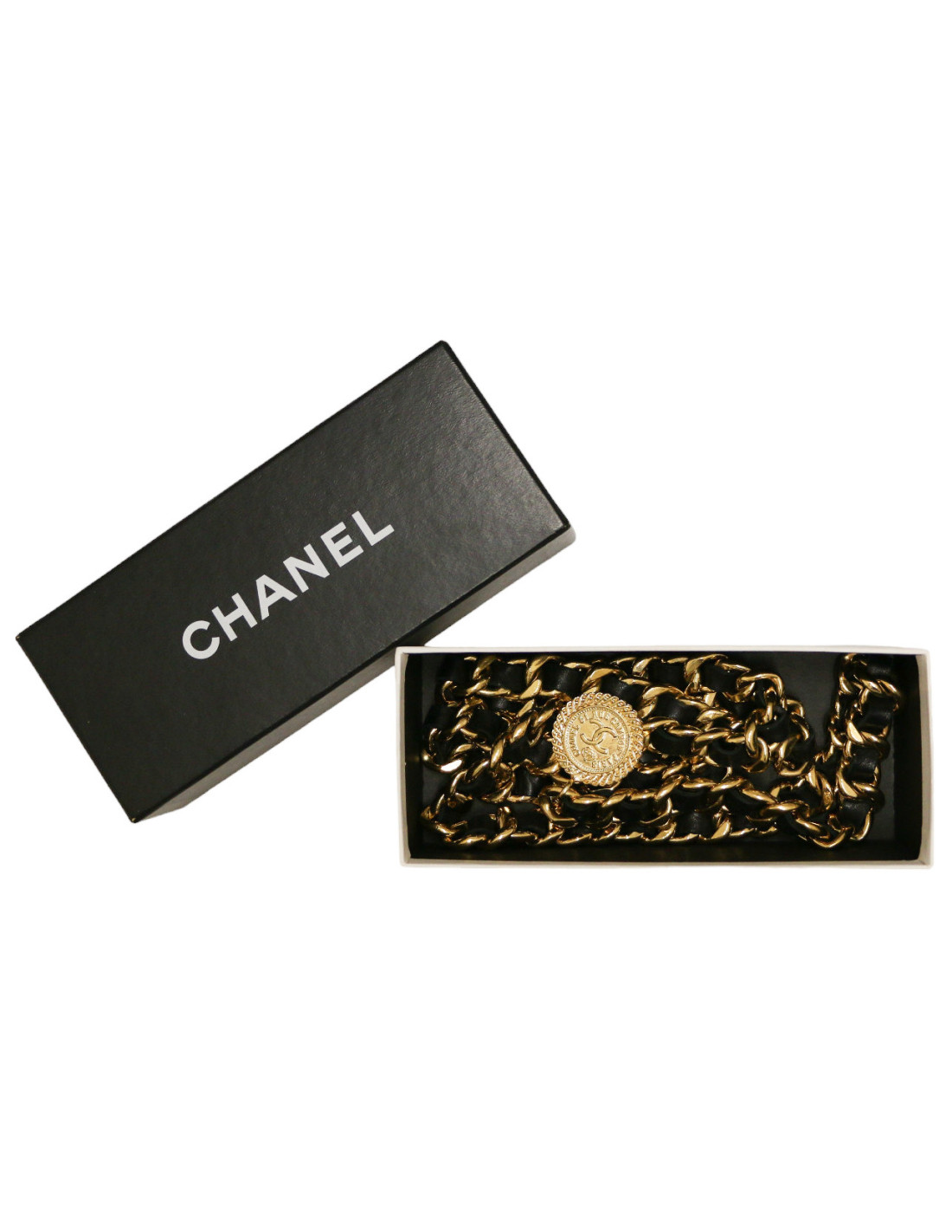 Last items in stock BELTS CHANEL vintage gilded metal and plaited brown leather belt CHANEL 20950 790.00 € CHANEL vintage gilded metal and plaited brown leather belt Condition: goodMaterials: leather, metalColors: gold, brownHardware: gold finish metalMeasurements: total length: 82.5cm, width: 2cmDetails: Beautiful Chanel belt in gilded metal interlaced with brown braided leather. Vintage belt. Good condition. The gilding has faded on the rings. Hook clasp. CC... Add to cart