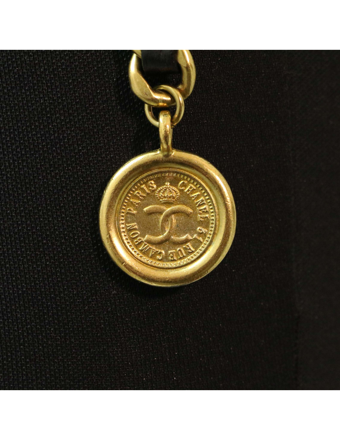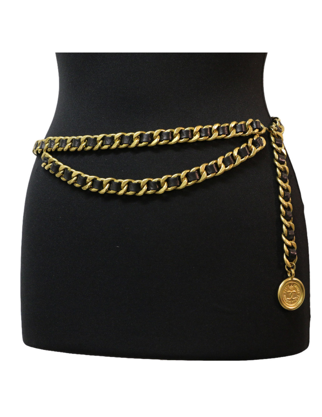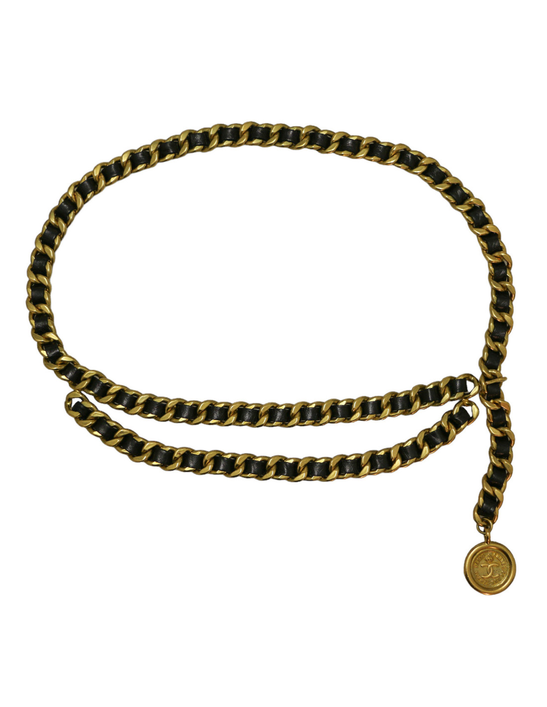 Last items in stock BELTS CHANEL vintage copper chain and leather belt CHANEL 34963 1,710.00 € CHANEL vintage charms CC belt Fall 1997 Condition : very goodGender : womanCollection : beltMaterials : metal, leatherColors : copper, brownMeasurements : total length 82 cm, width 2 cmStamp : yesYear : Fall 1997Hardware: aged copper finish metalDetails : Vintage belt with 8 CC charms. Hook clasp, Chanel signature on top. Belt adjusts to 14 cm. Add to cart