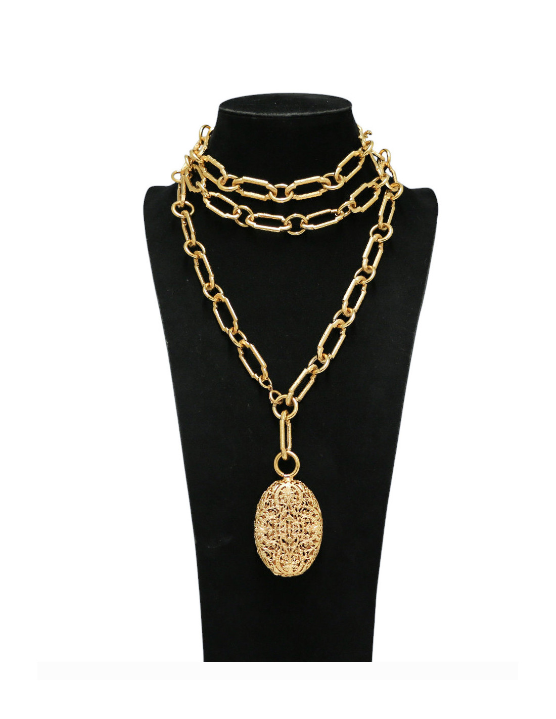 Last items in stock NECKLACES CHRISTIAN DIOR charms belt-necklace DIOR 36876 1,150.00 € CHRISTIAN DIOR vintage belt-necklace Condition : very goodMade in FranceMaterials : metal, rhinestonesColor : goldMeasurements : total length: 80 cm, width : 2.5 cmStamp : yesDetails : Can be worn as a necklace or belt, adjustable with a toggle clasp. No rhinestones are missing on these charms. Add to cart