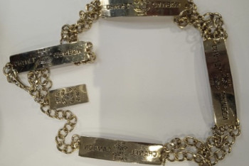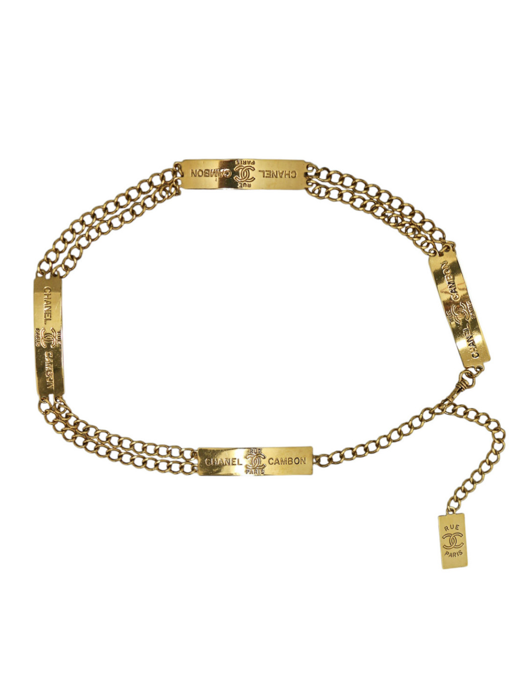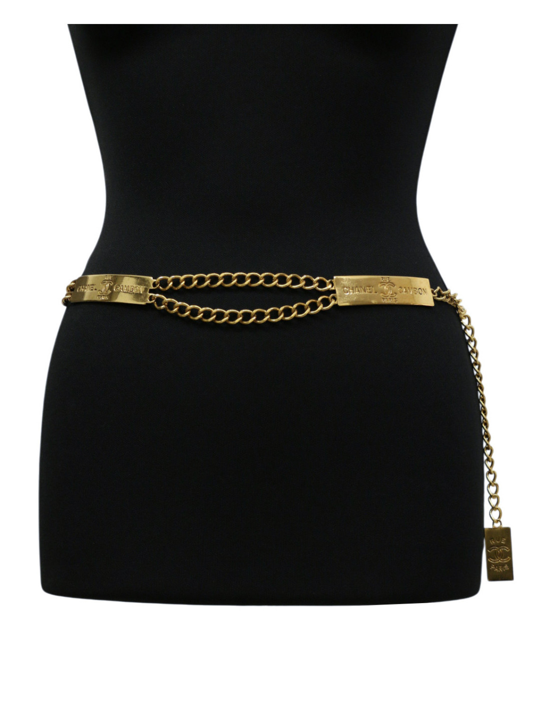 Last items in stock NECKLACES CHRISTIAN DIOR charms belt-necklace DIOR 36876 1,150.00 € CHRISTIAN DIOR vintage belt-necklace Condition : very goodMade in FranceMaterials : metal, rhinestonesColor : goldMeasurements : total length: 80 cm, width : 2.5 cmStamp : yesDetails : Can be worn as a necklace or belt, adjustable with a toggle clasp. No rhinestones are missing on these charms. Add to cart