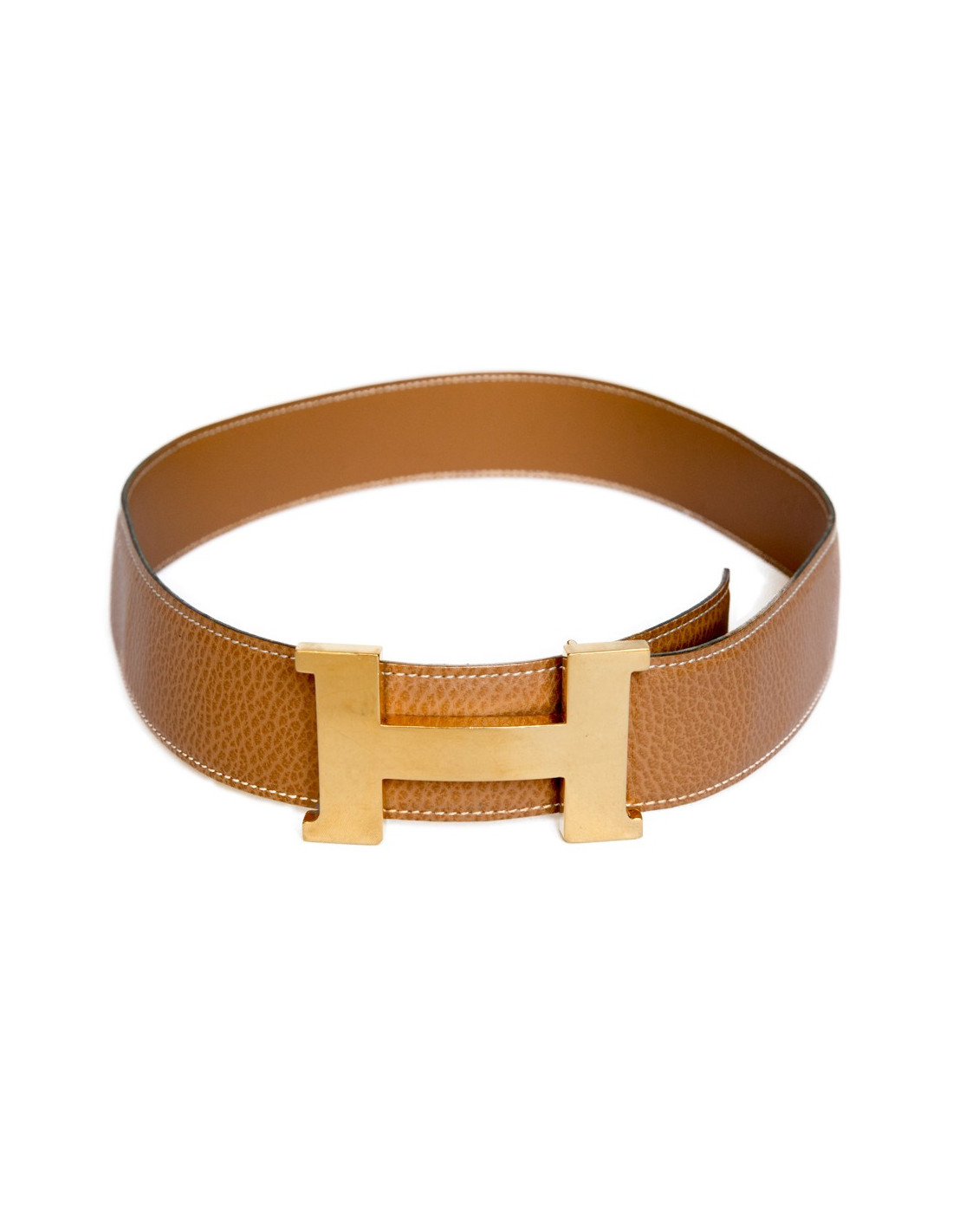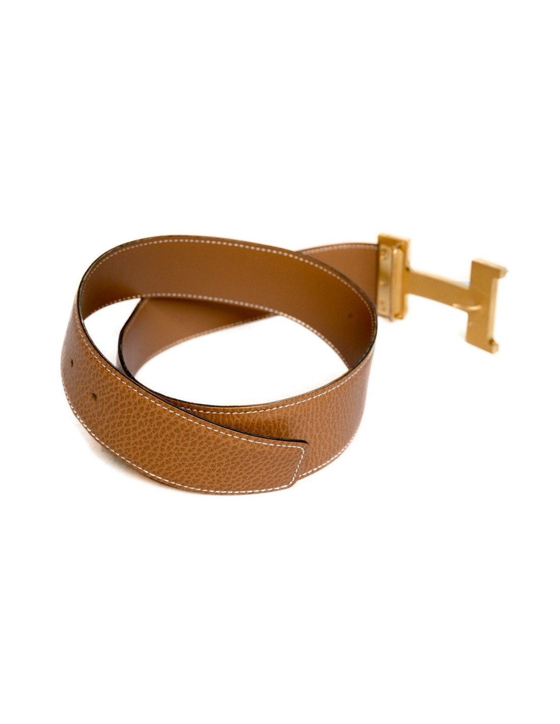 H Golden Hermes belt leather courchevel gold T70. The H jewelry is inseparable from the belt. The leather is légèrement gondolé à l'endroit de l'arrondi à l'arrière , quelques micros rayures sur la bijouterie.