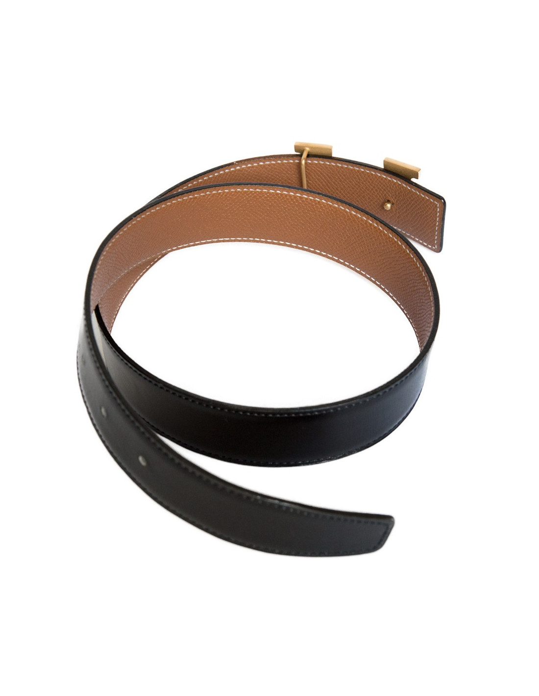 Belt: Hermes reversible leather black box on one side and leather courchevel gold on the other.