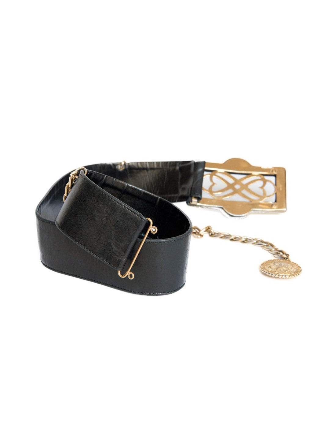A topped a Medallion chain, fixed with a hook at the front of the belt, it is slightly discolored gold metal (Silver parsimony).