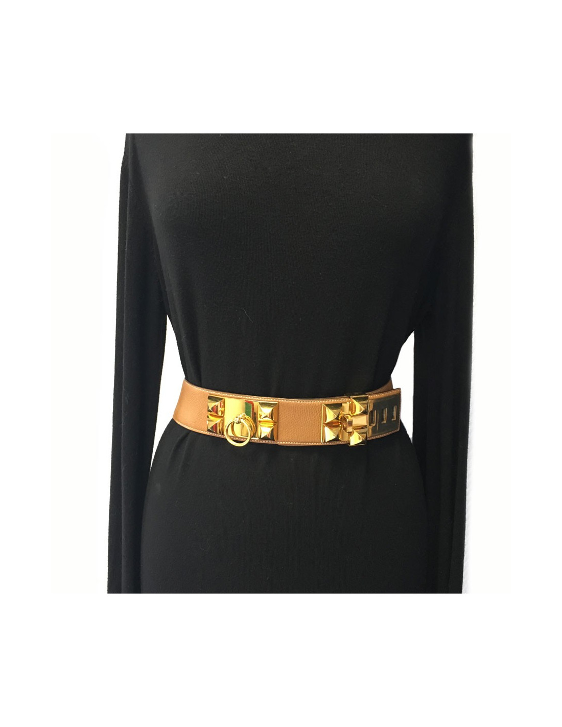 Belt "Fido" HERMES leather gold and Golden jewellery