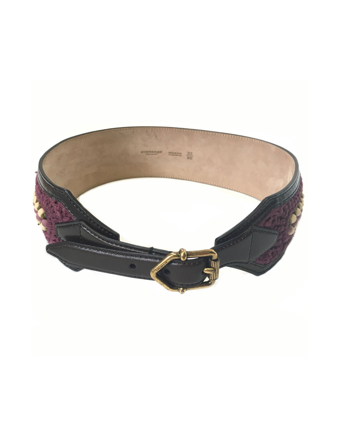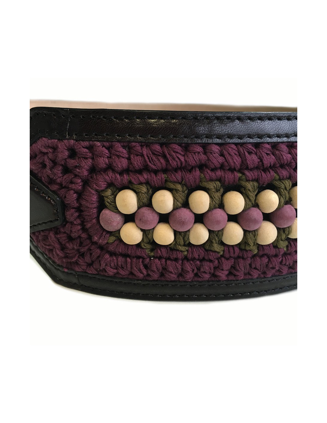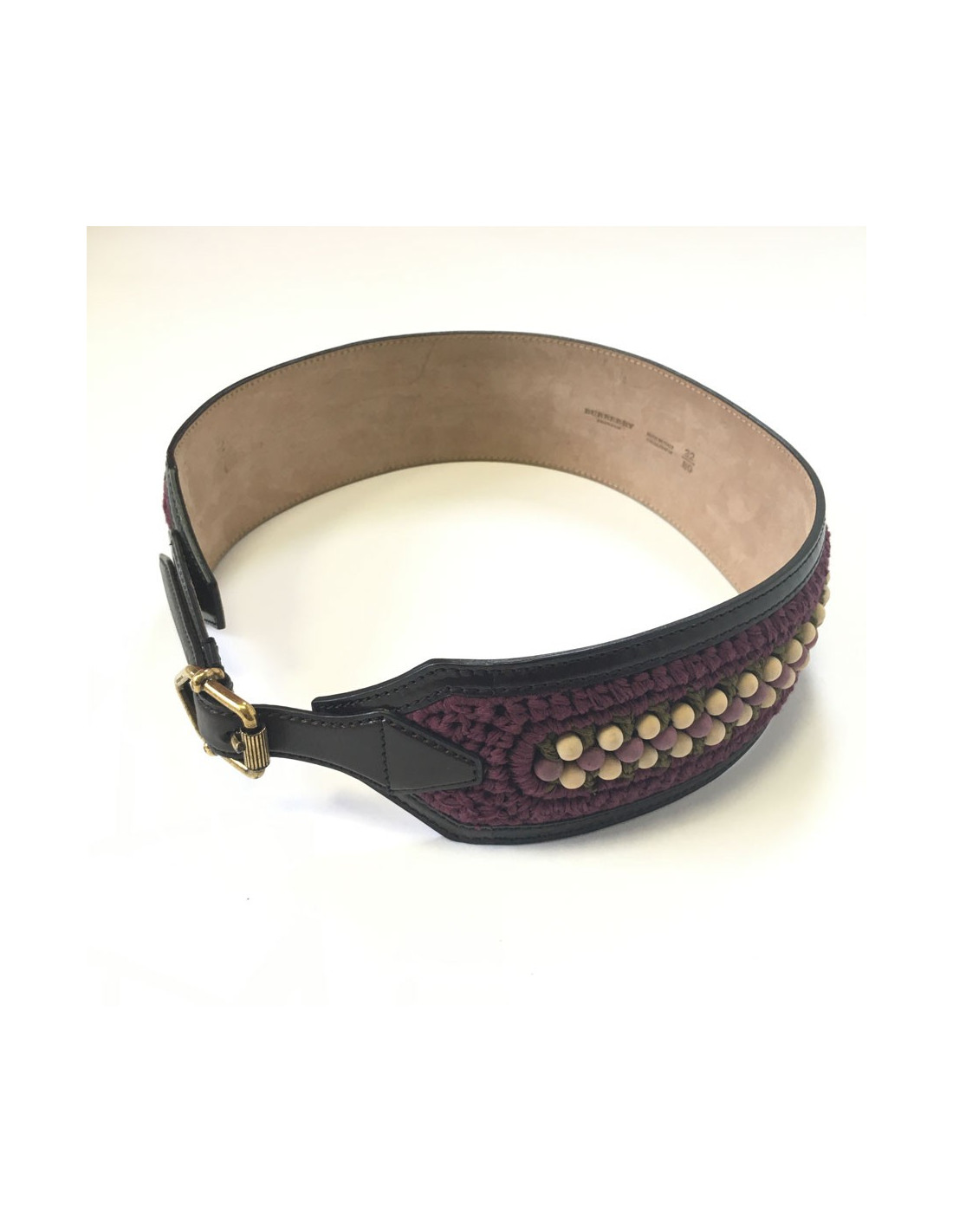 Belt BURBERRY PRORSUM purple leather, knitted cotton and wooden beads purple wire and raw wood. Beige leather interior. Old gold jewelry. In very good condition.
